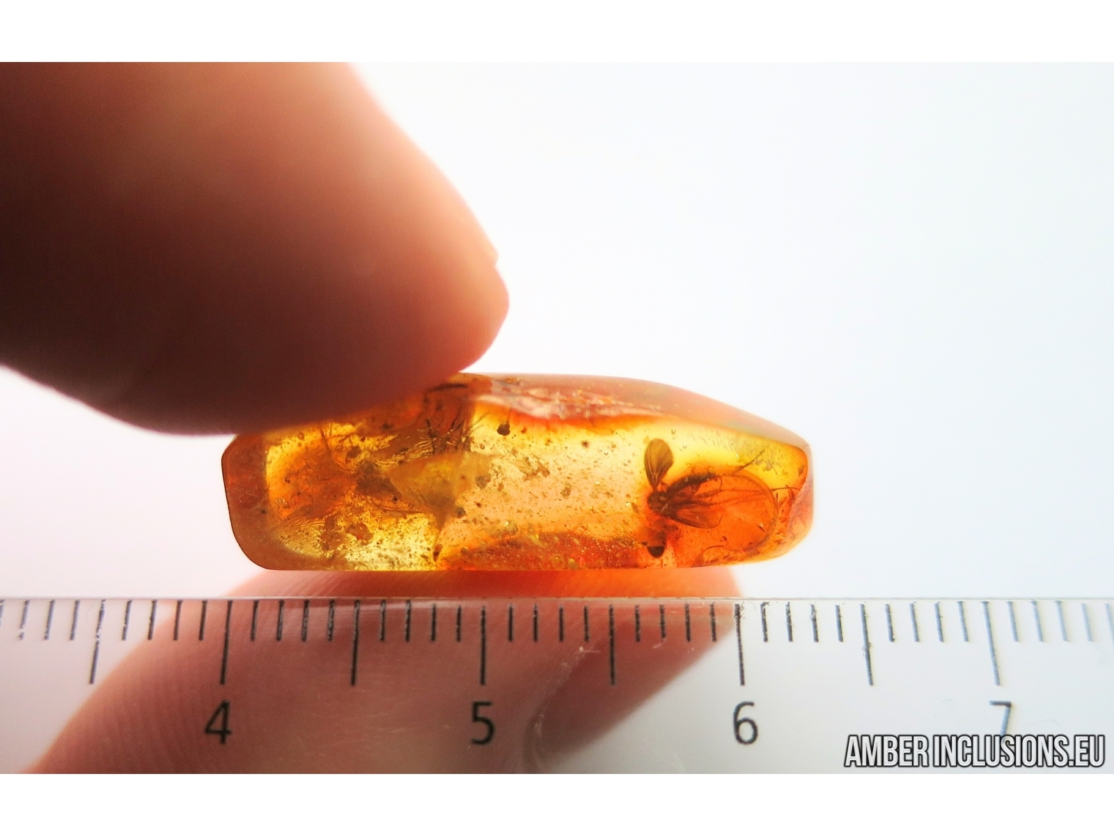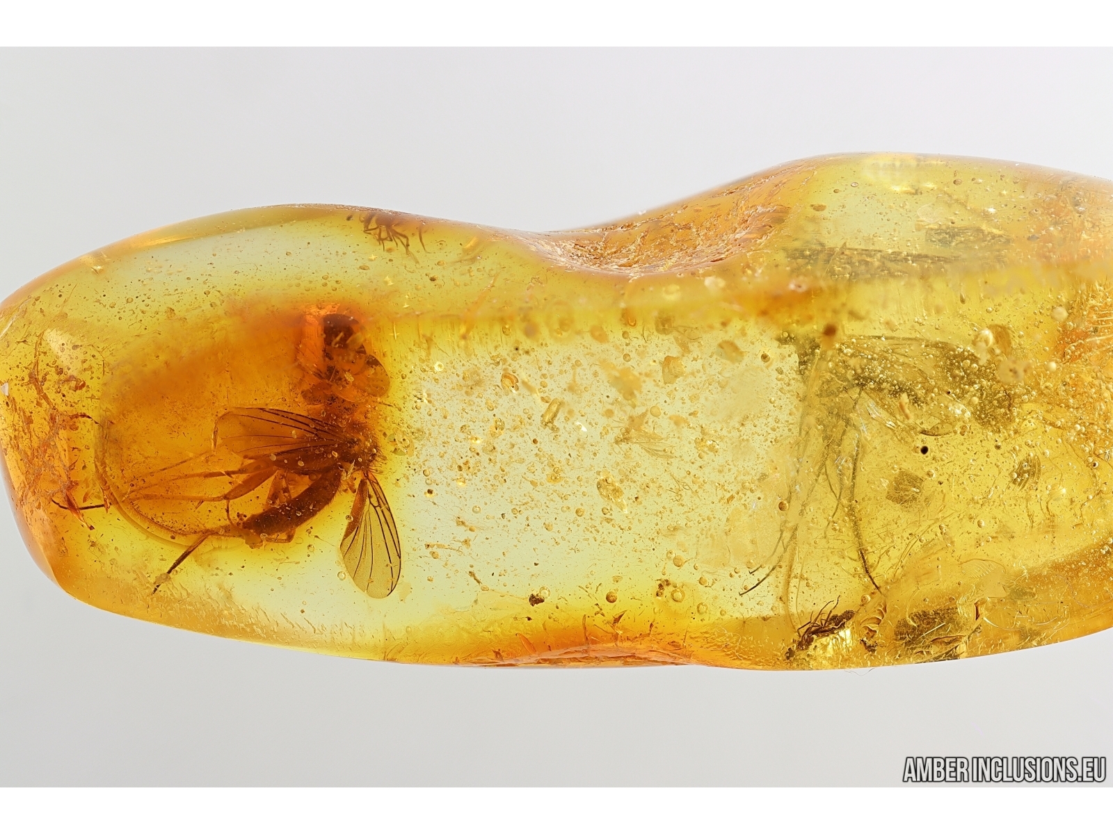 Baltic amber stone with fossil inclusions, trapped 34-56 million years ago -Fungus gnat Mycetophilidae and More.
