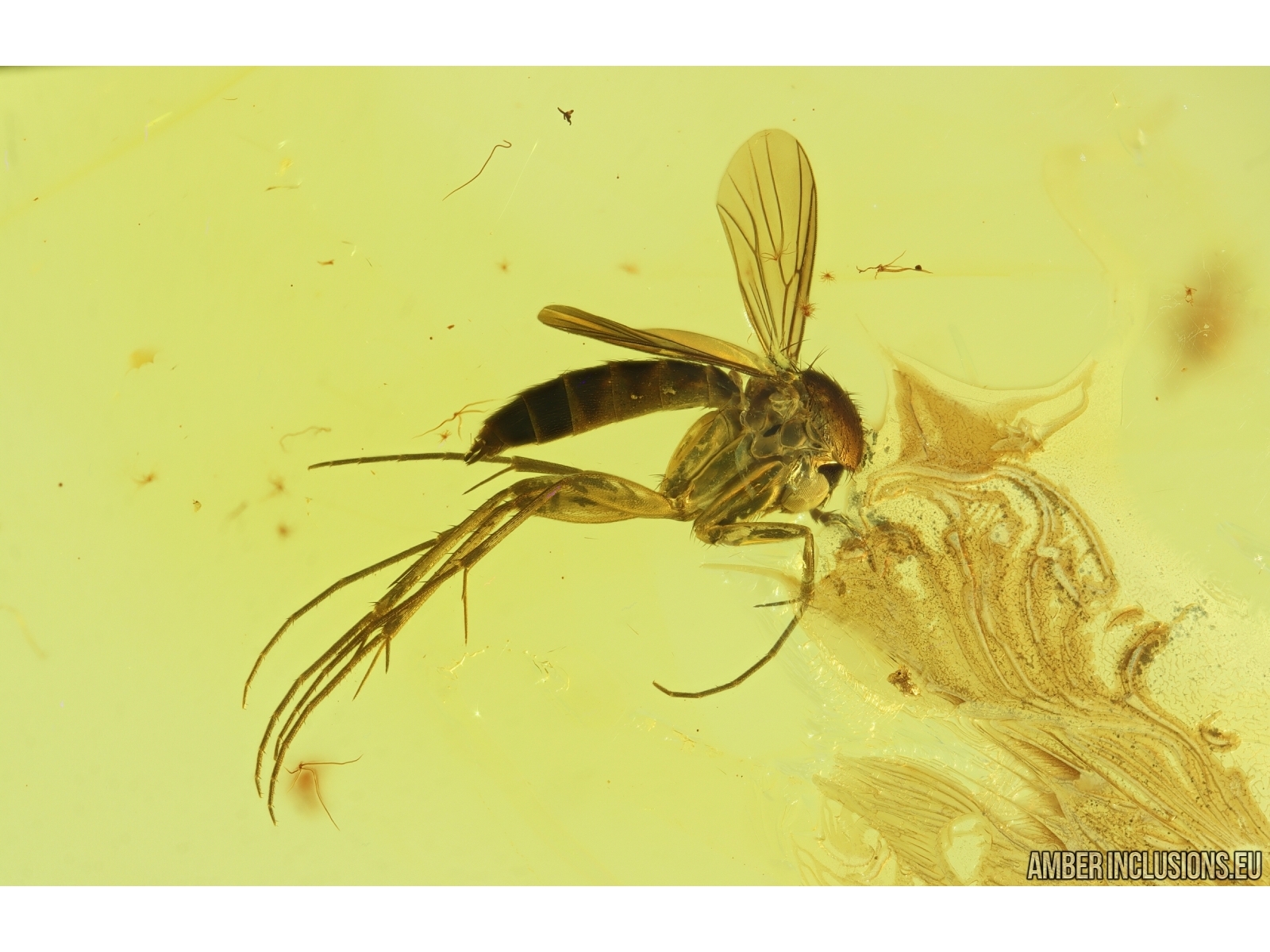 Ukrainian Rovno amber stone with fossil inclusion, trapped 34-56 million years ago - Fungus gnat Mycetophilidae.