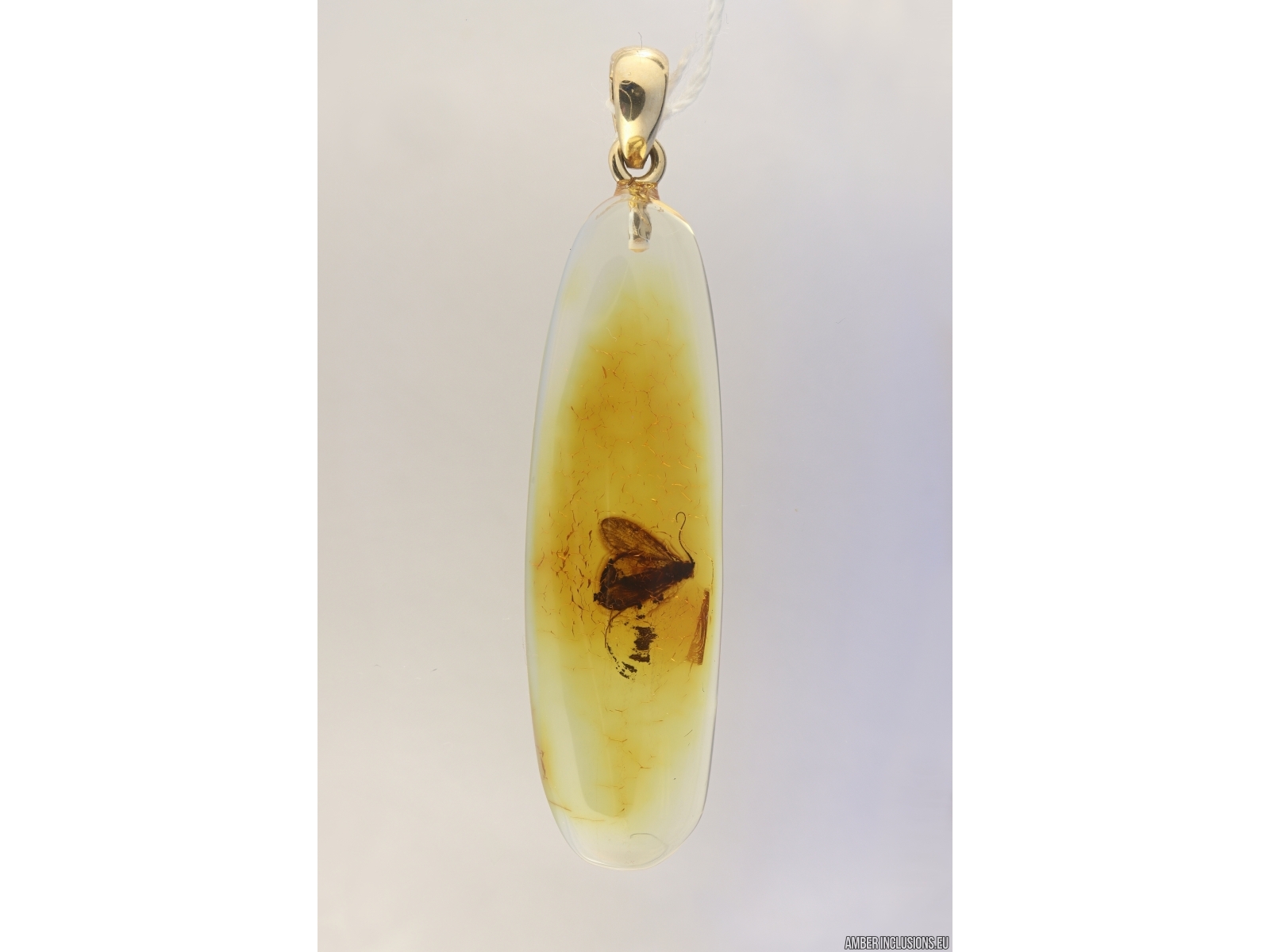 Genuine Baltic amber golden pendant 14K with fossil insect- Caddisfly.