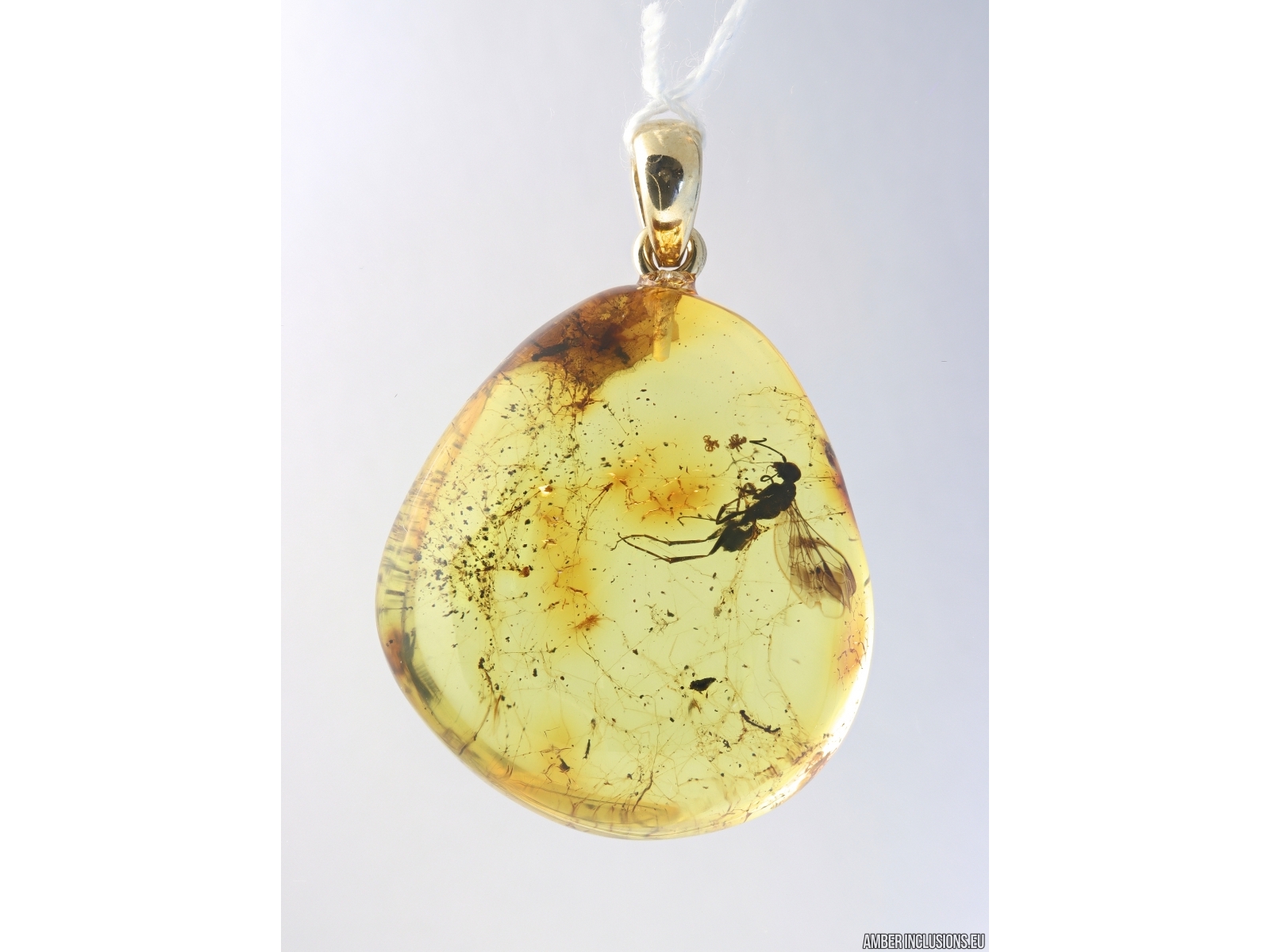 Genuine Baltic amber golden pendant 14K with fossil insect- Wasp.