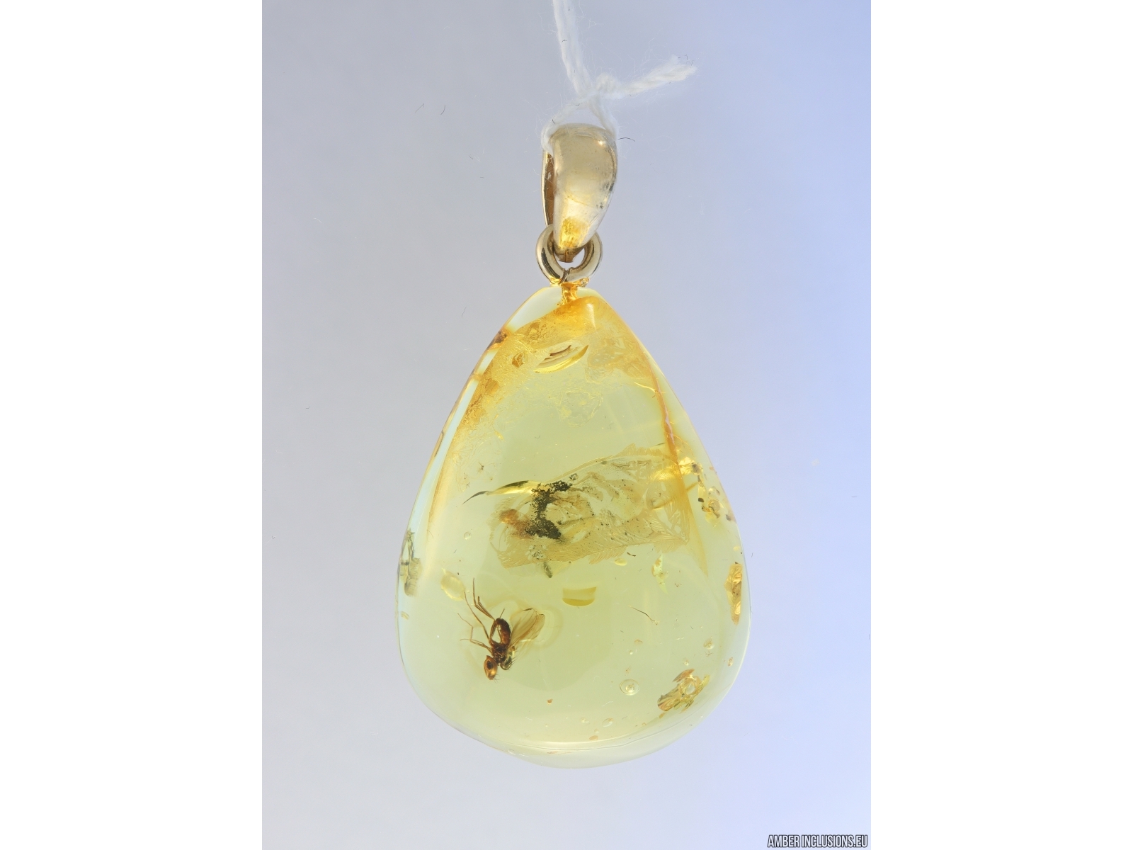 Genuine Baltic amber golden pendant 14K with fossil insect - Fly.
