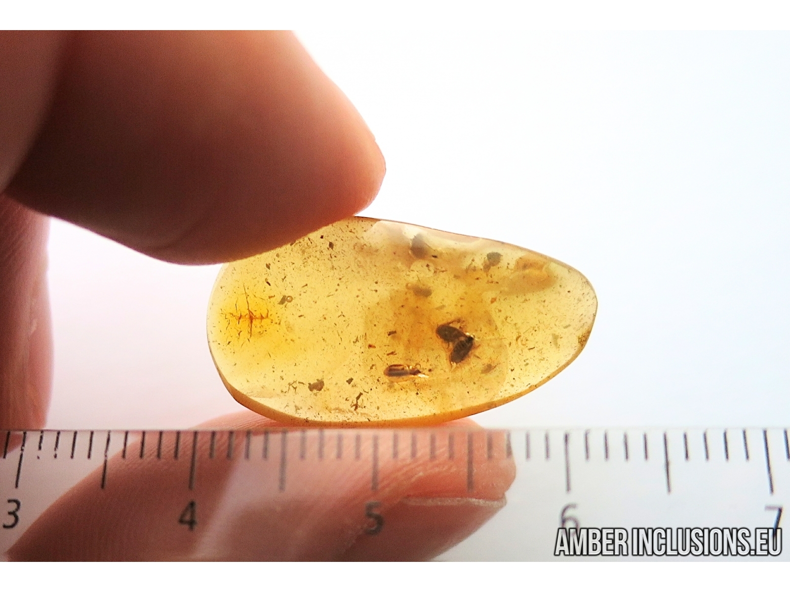 It weighs 1 g. Measurements of stone 24x13x5mm, length of beetle ~2.2mm, gnat ~2.2mm.