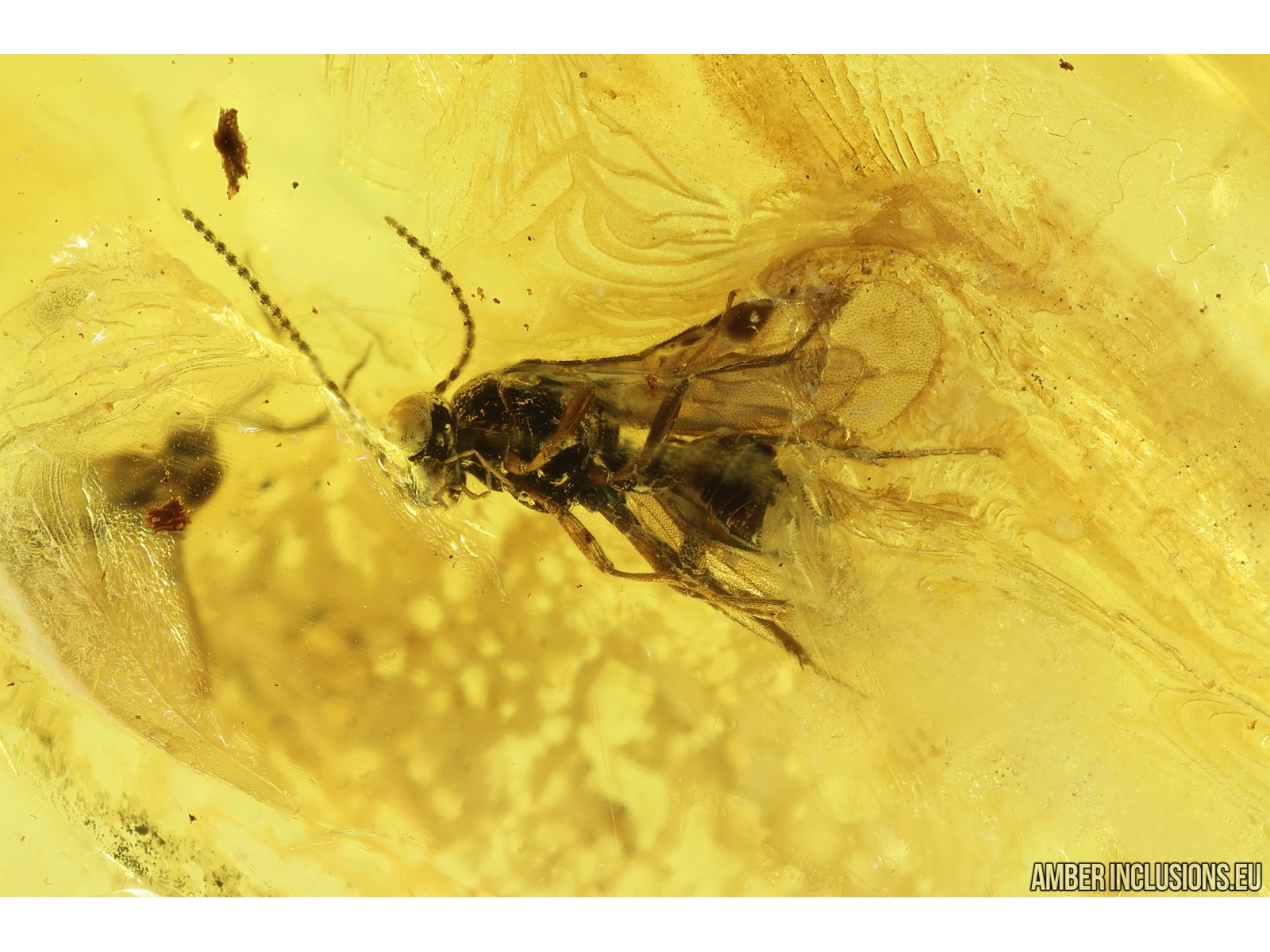 Baltic amber stone with fossil inclusions, trapped 34-56 million years ago - Hymenoptera Braconidae Wasp and More.