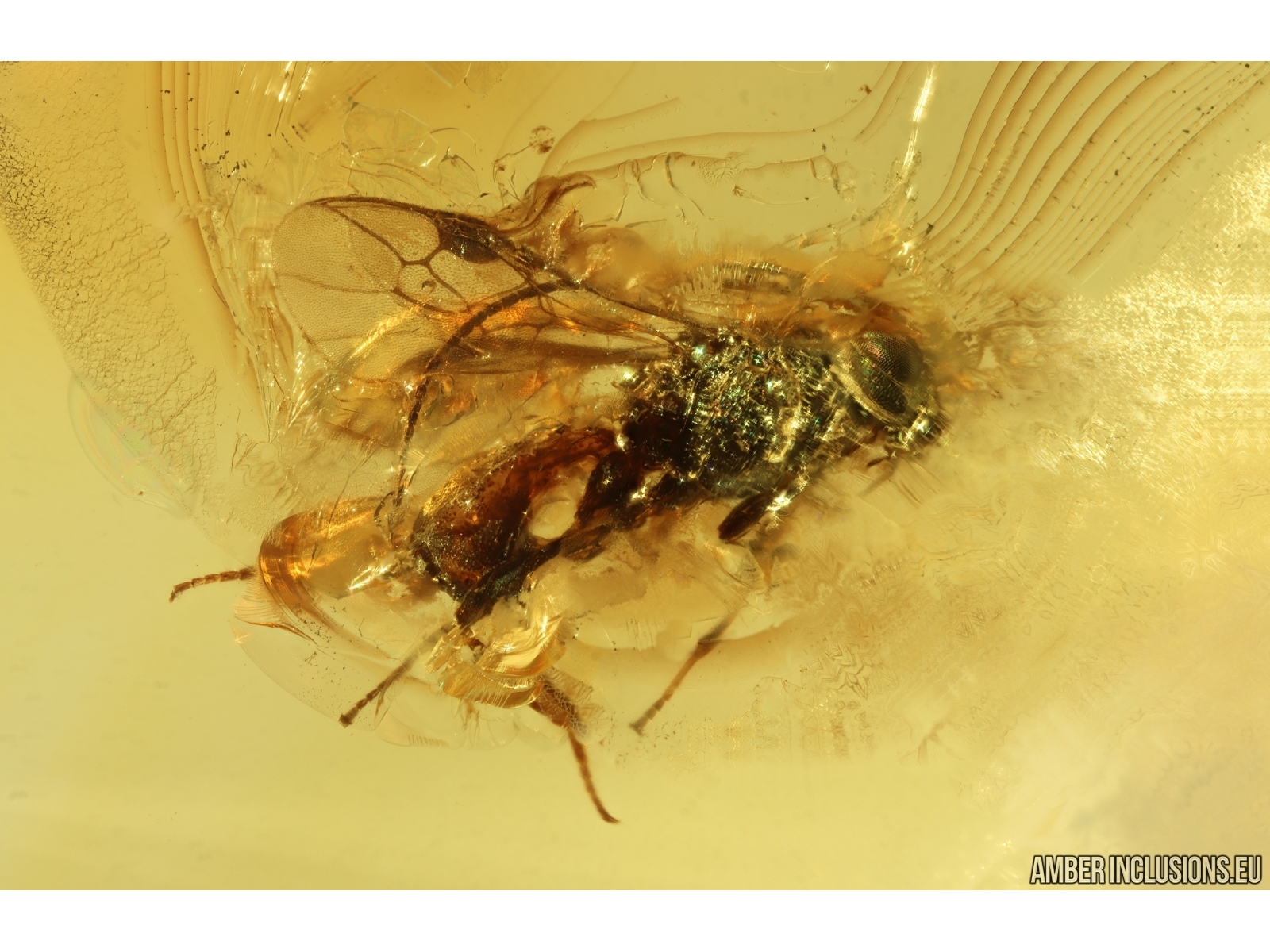 Baltic amber stone with fossil inclusions, trapped 34-56 million years ago - Hymenoptera Braconidae Wasp.