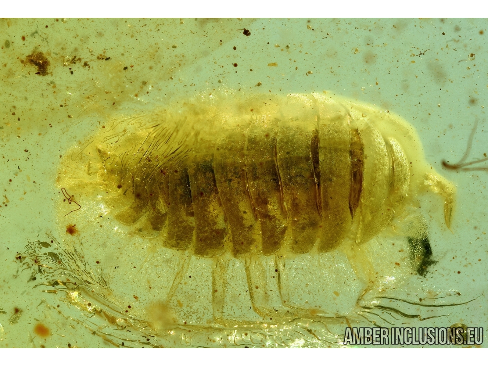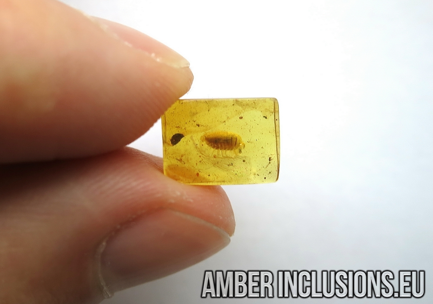 Baltic amber stone with fossil inclusion- Isopoda, Woodlice.