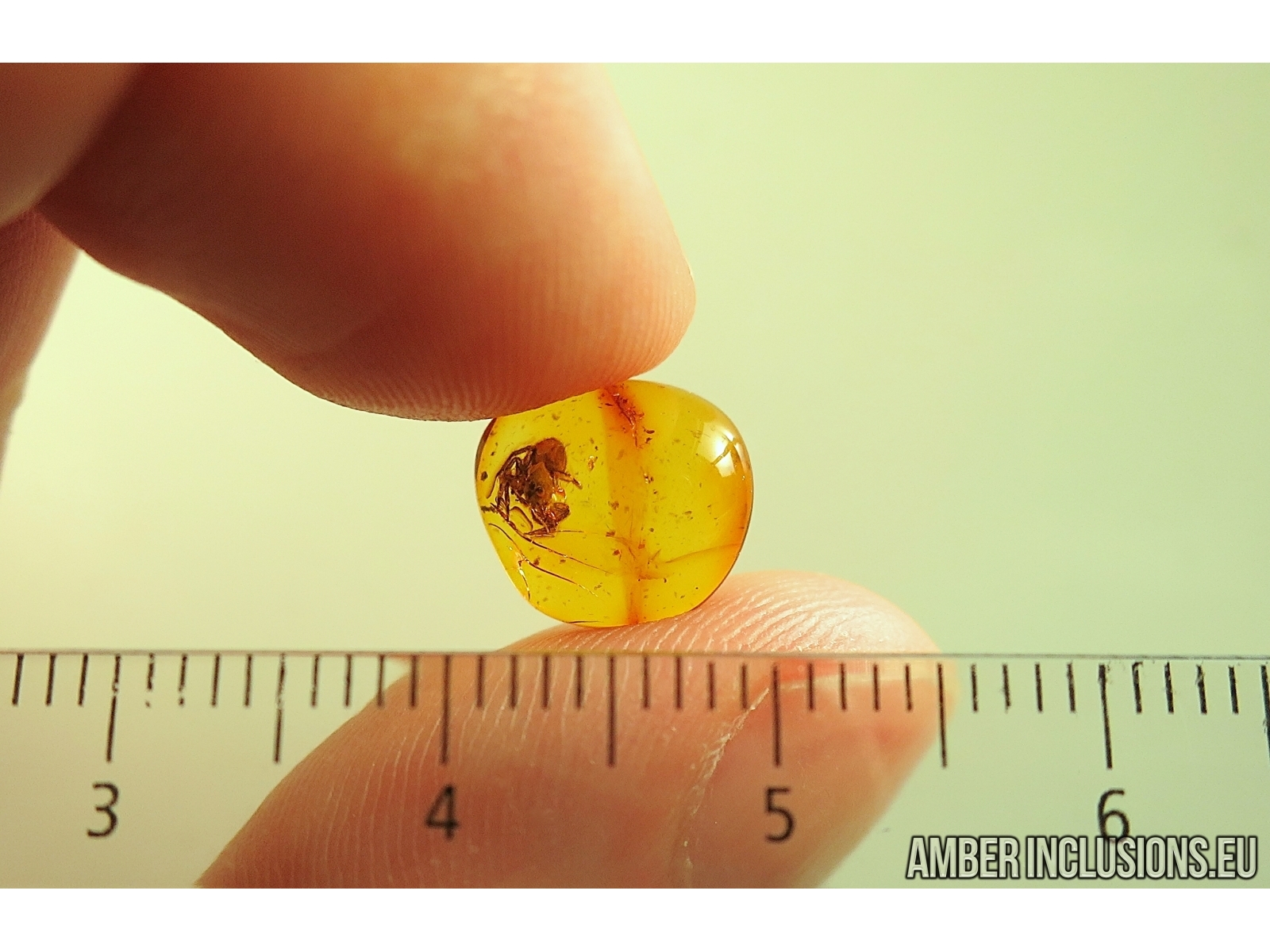 Baltic amber stone with fossil inclusion, trapped 34-56 million years ago - Jumping Spider Salticidae.