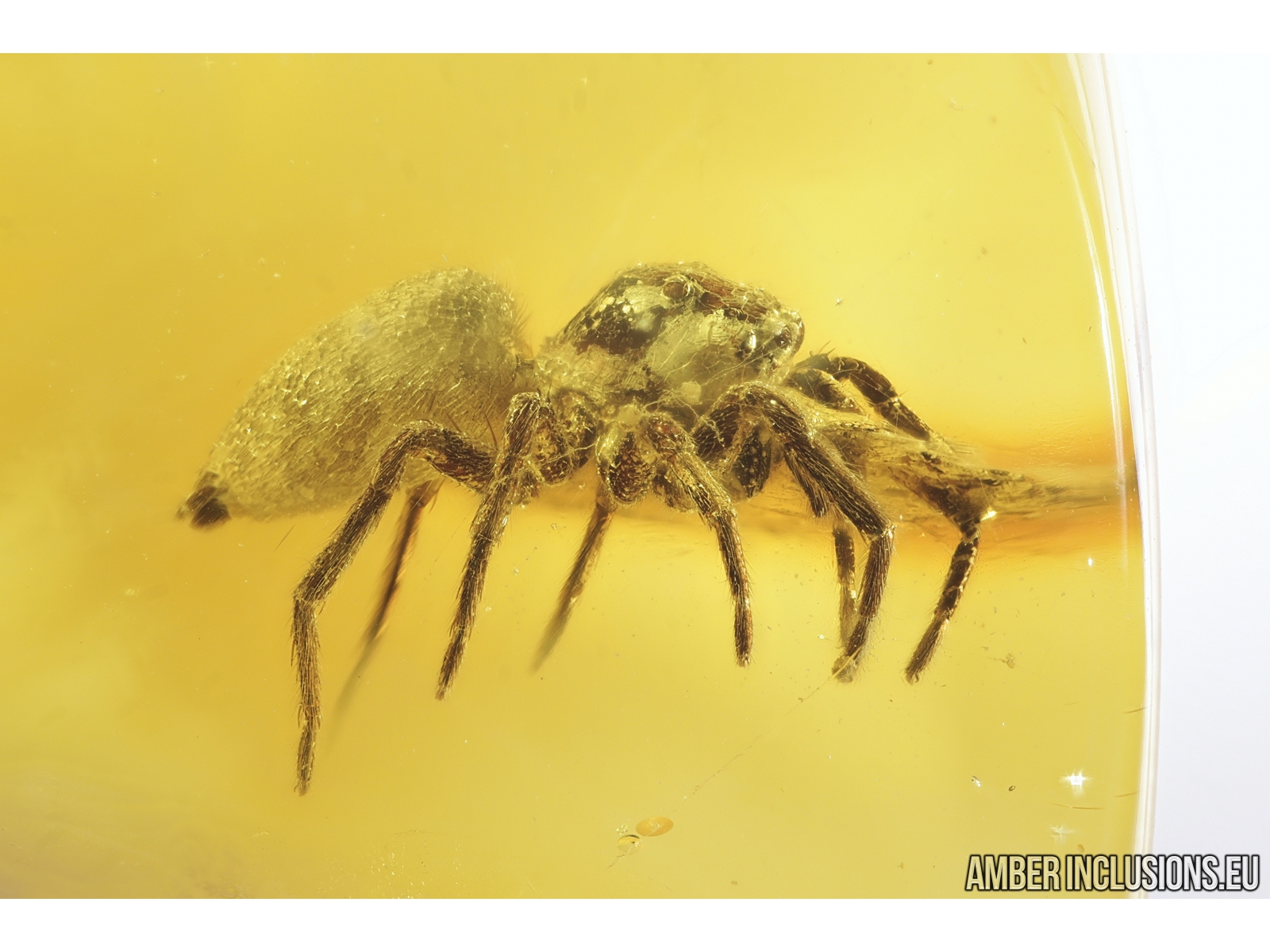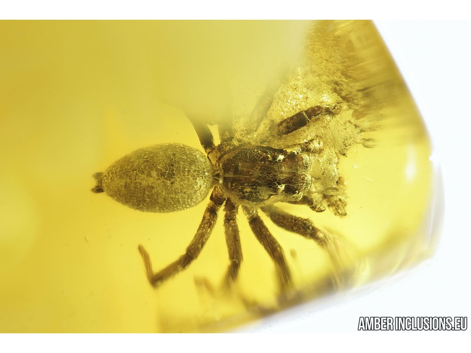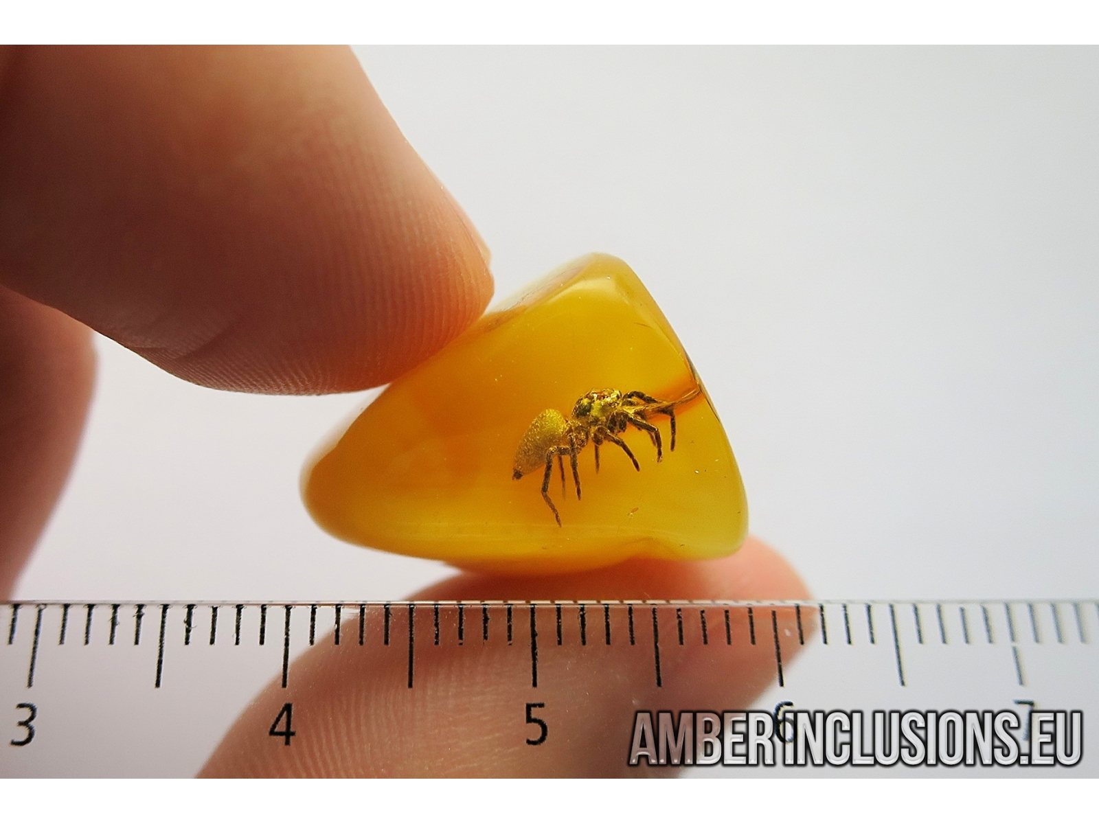 Nice honey color Baltic amber stone with fossil inclusion, trapped 34-56 million years ago - Jumping Spider, Salticidae.