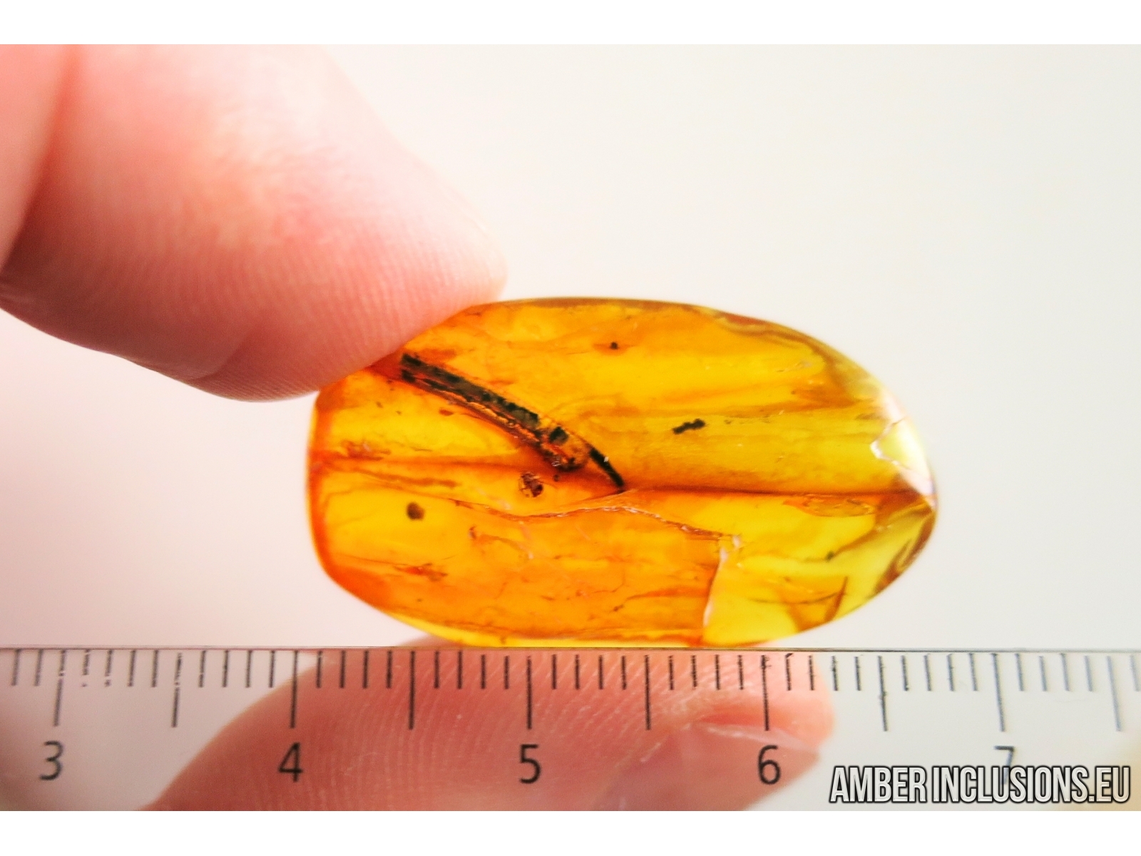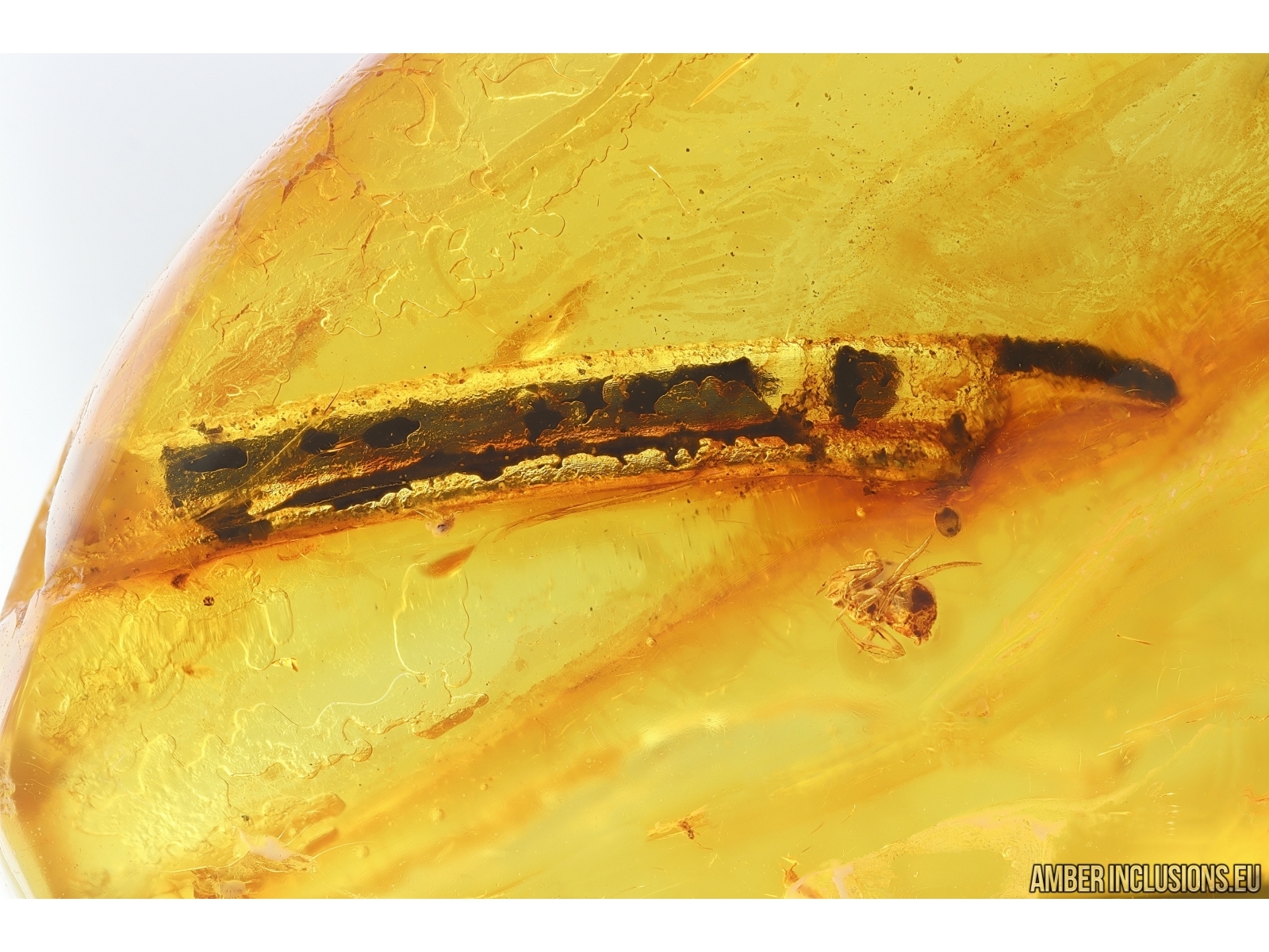 Baltic amber stone with fossil inclusions, trapped 34-56 million years ago - Leaf and Spider.