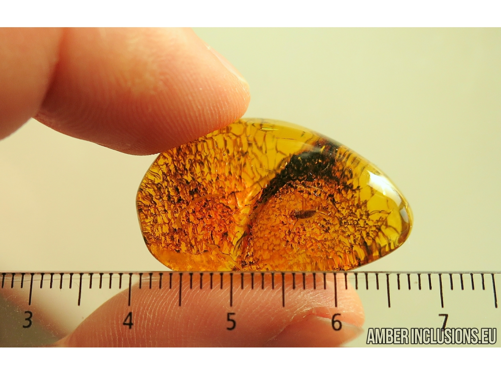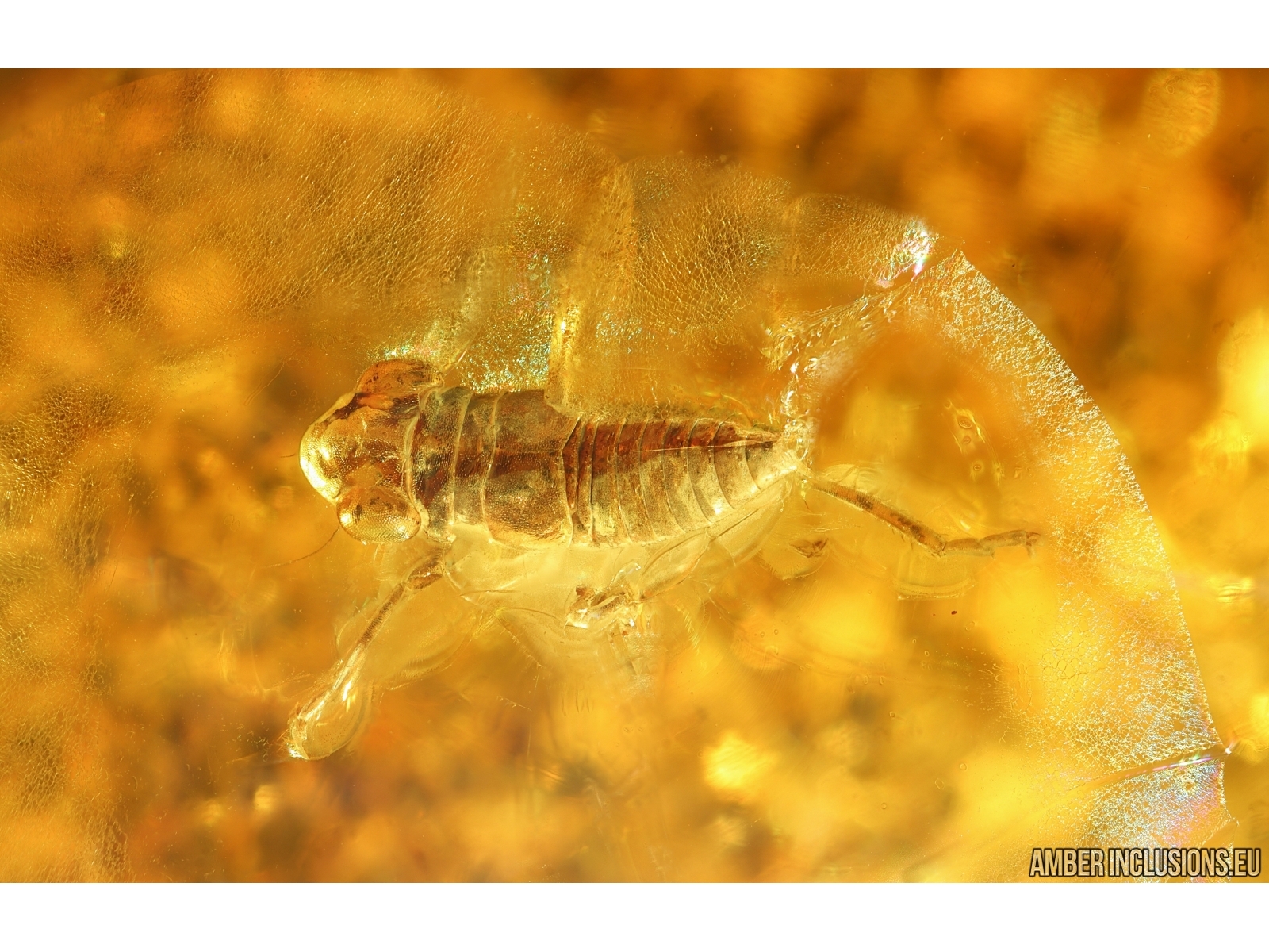 Baltic amber stone with fossil inclusion, trapped 34-56 million years ago -Leafhopper Nymph, Cicadellidae.