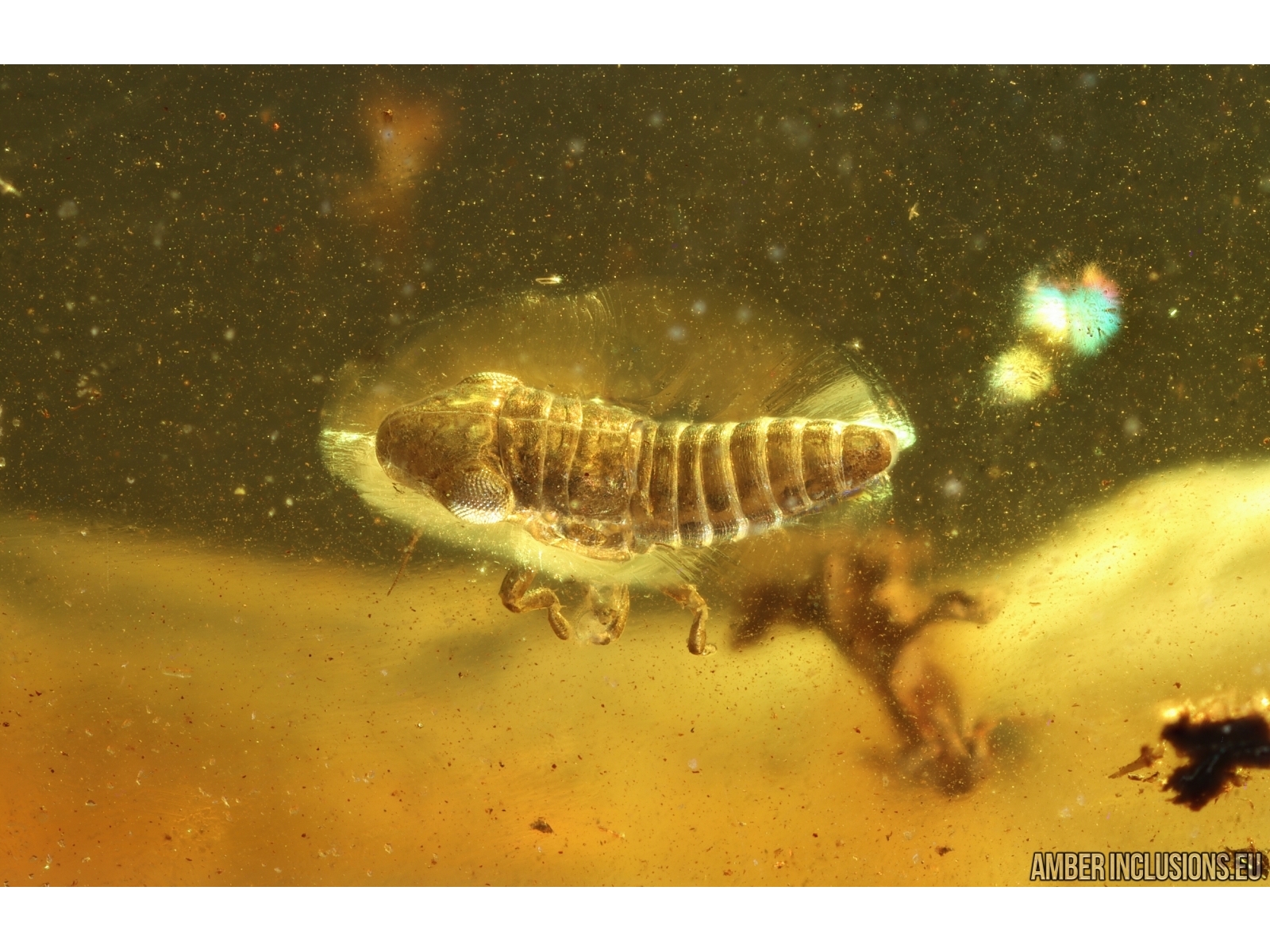 Baltic amber stone with fossil inclusion, trapped 34-56 million years ago -Leafhopper Nymph, Cicadellidae.