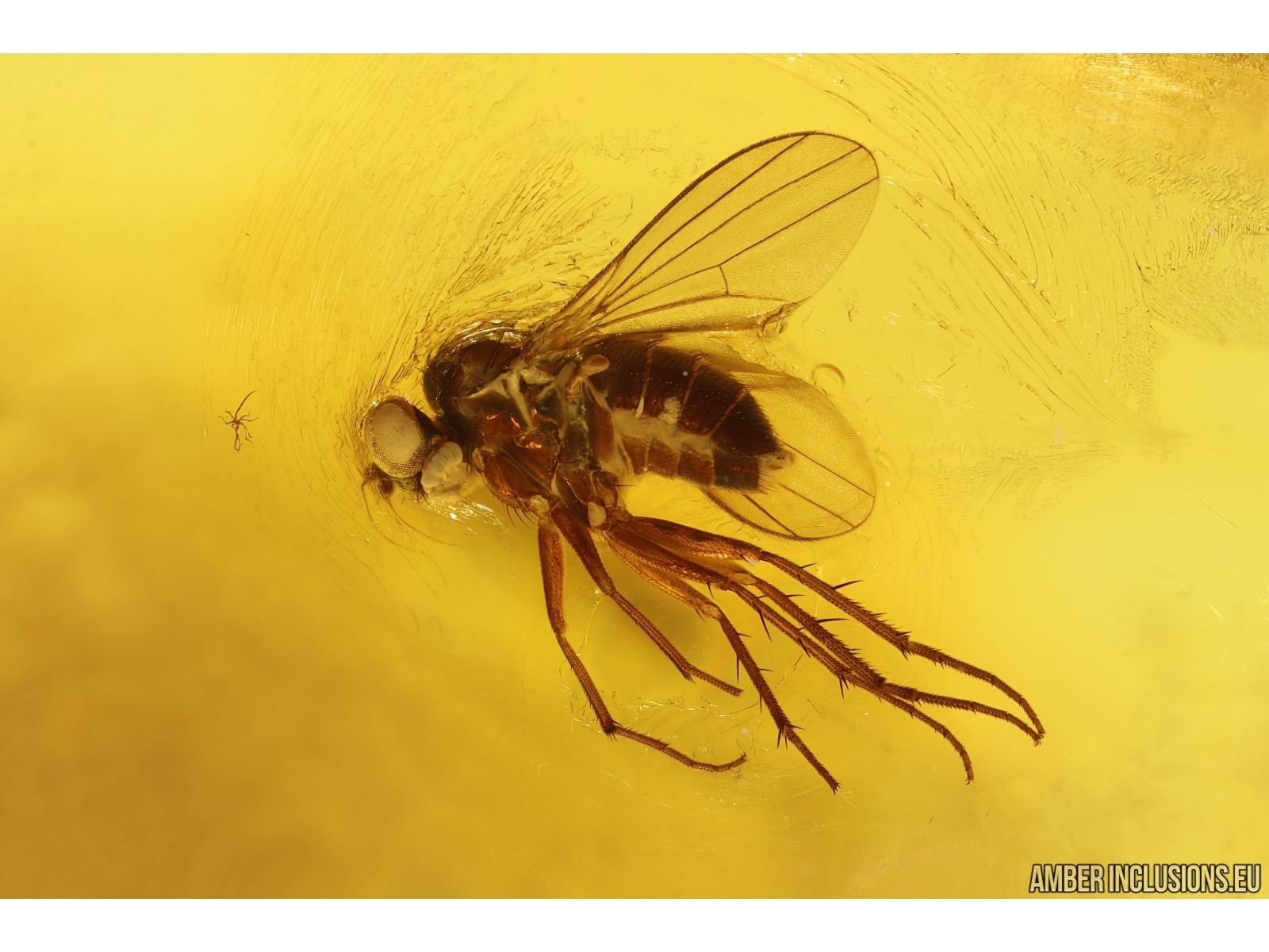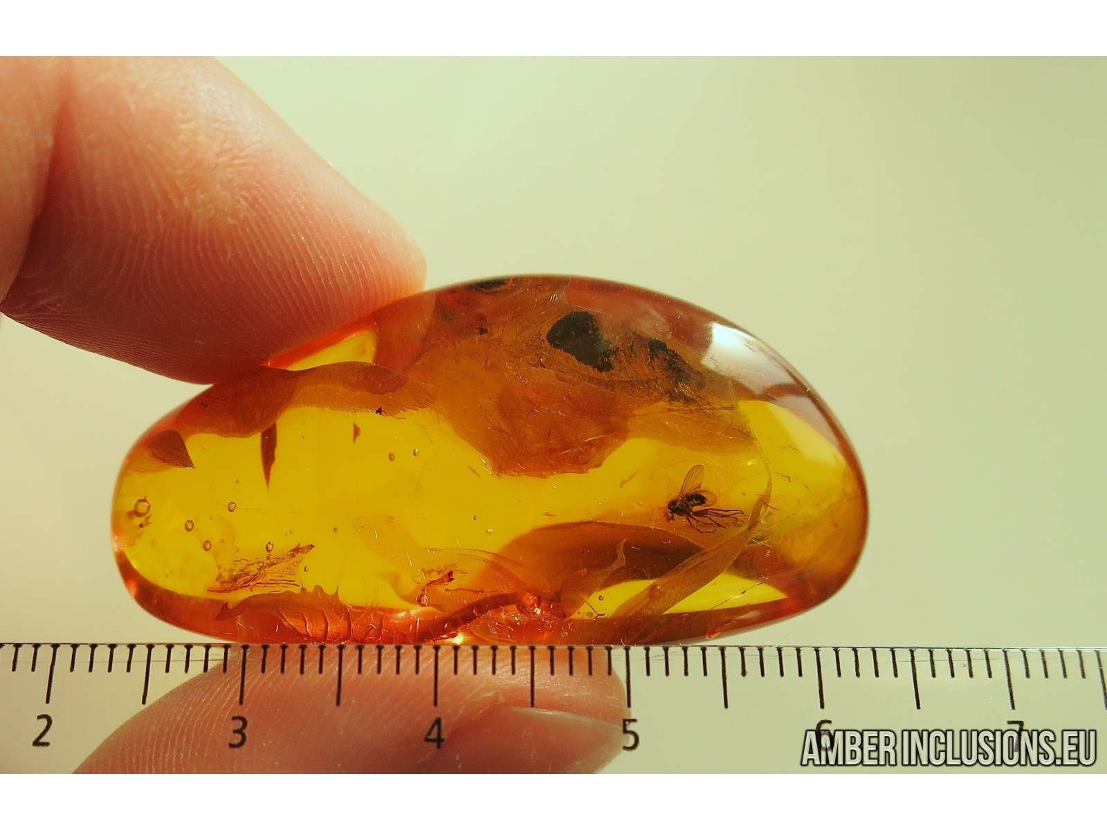 Baltic amber stone with fossil inclusion, trapped 34-56 million years ago - Long-legged fly Dolichopodidae.