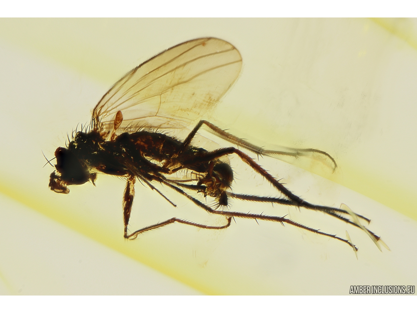 Baltic amber stone with fossil inclusion, trapped 34-56 million years ago -Long-legged fly Dolichopodidae.