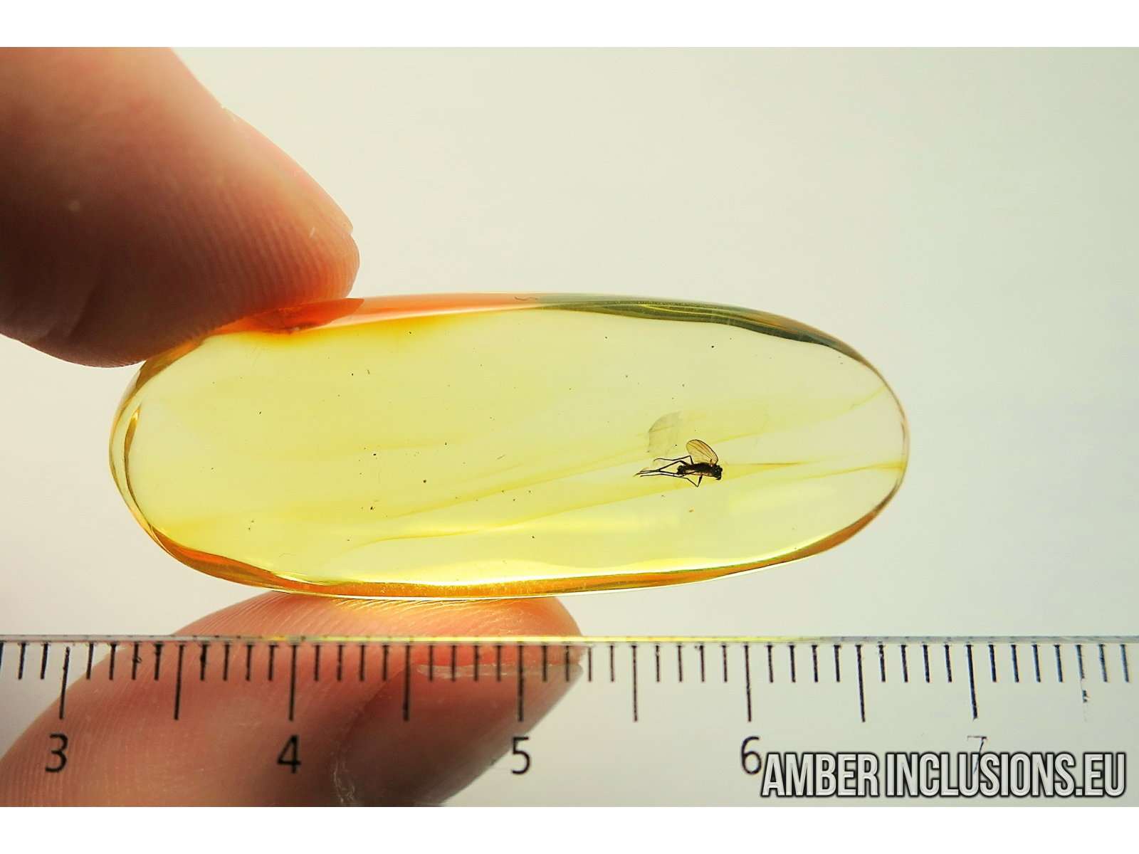 It weighs 3.2 g. Measurements of stone 40x15x8mm, length of fly body ~2mm, max ~4mm