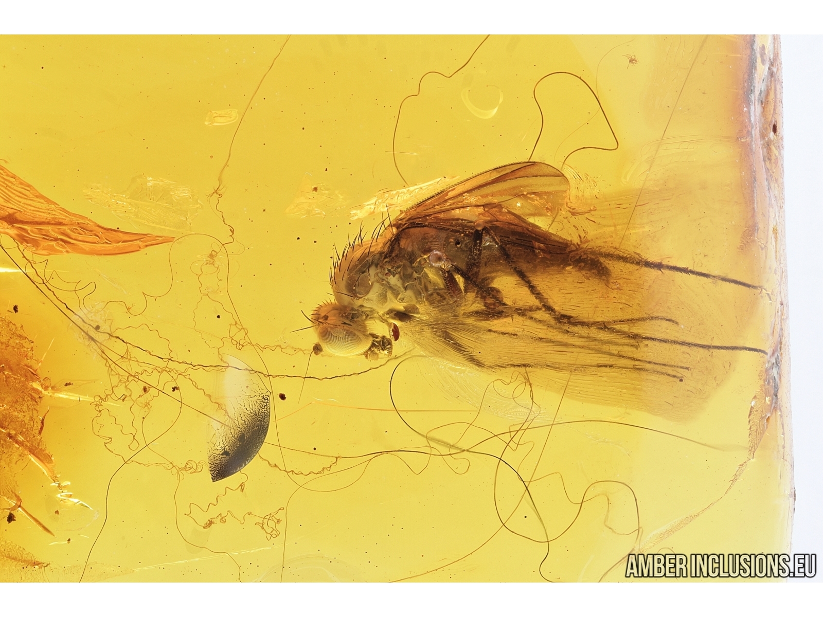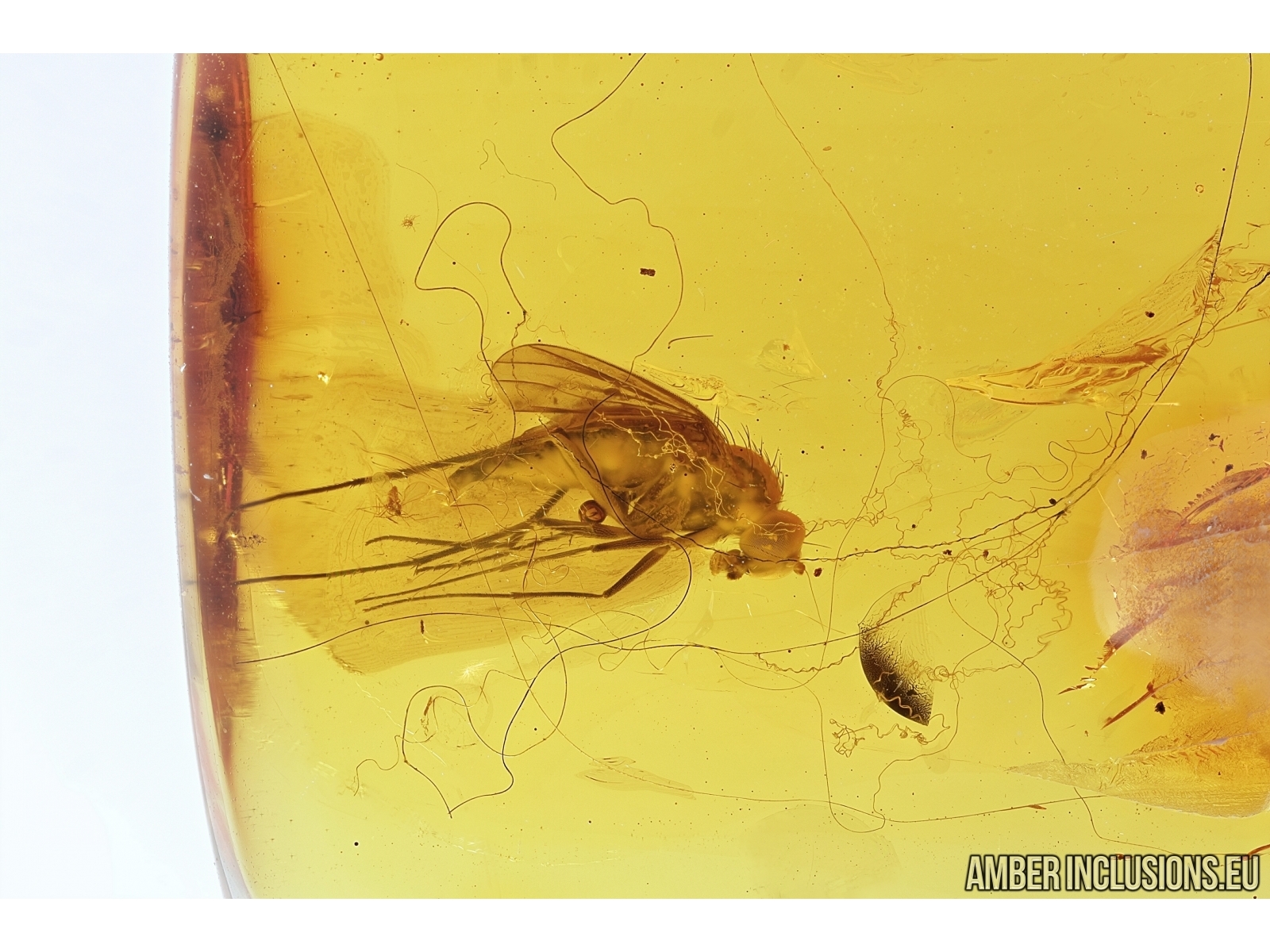 Baltic amber stone with fossil insect - Long-legged fly, Dolichopodidae in Spider Web!