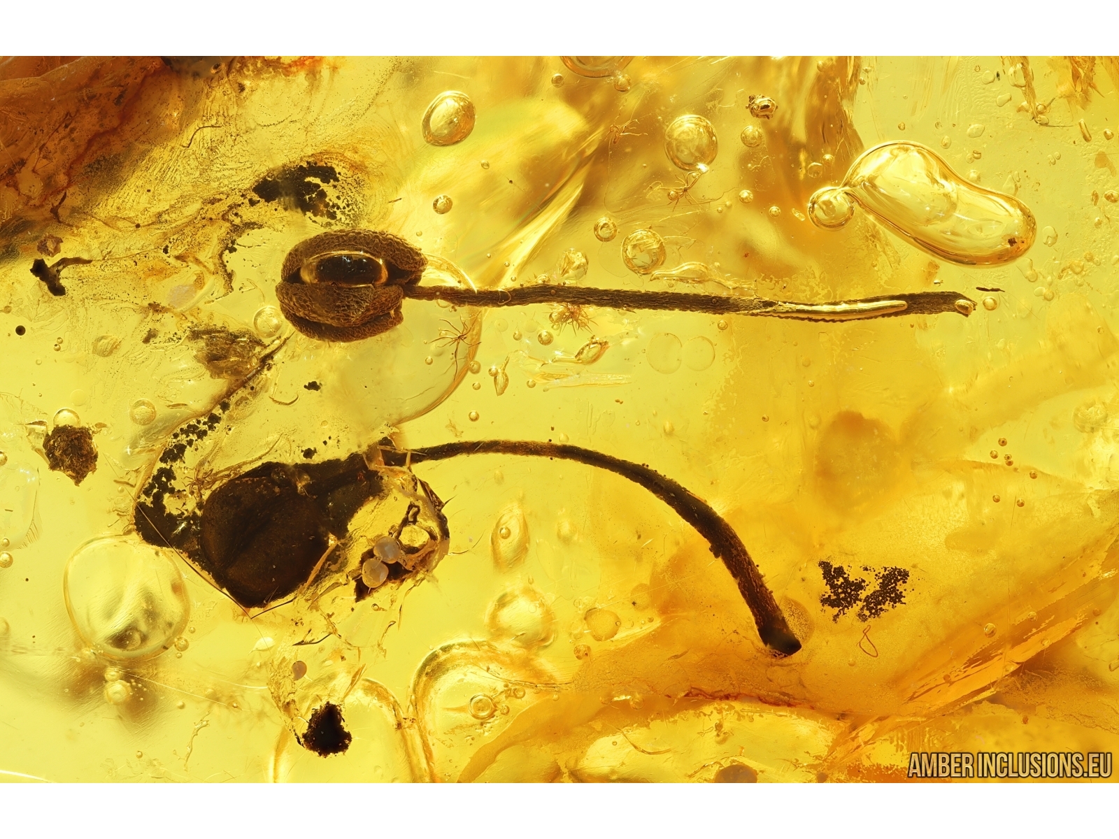 Baltic amber stone with fossil inclusion, trapped 34-56 million years ago - Many Flower Fragments, Leaf and More.