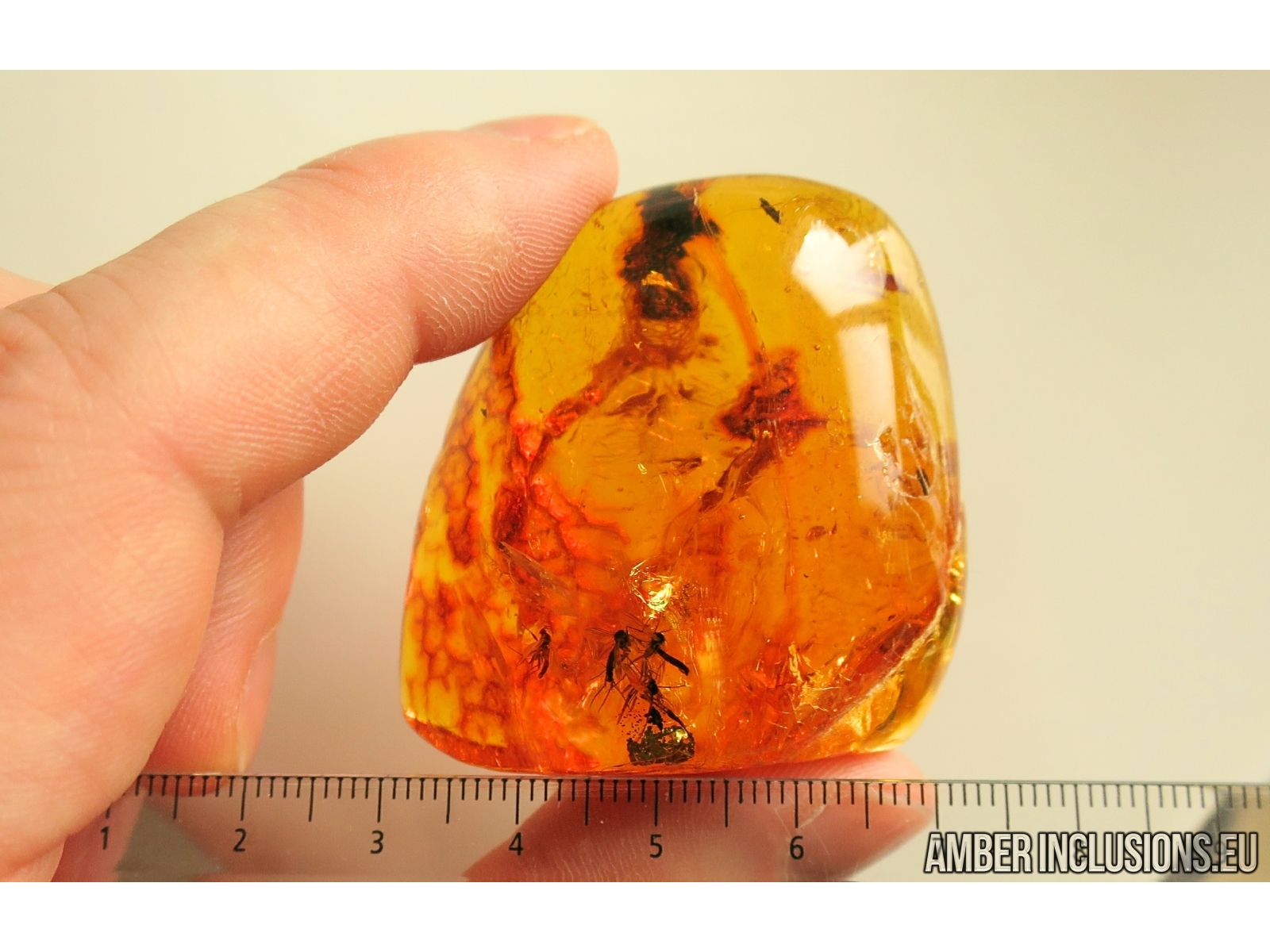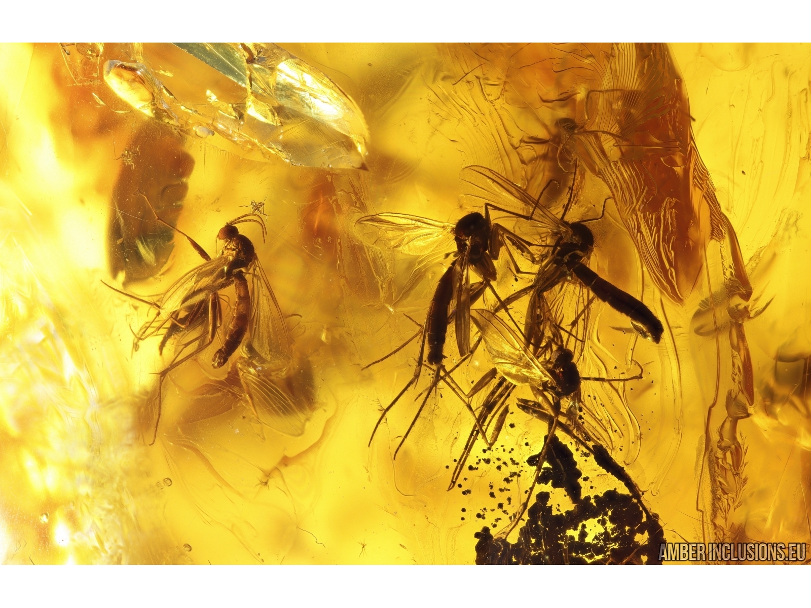 Baltic amber stone with fossil inclusions, trapped 34-56 million years ago -Many Fungus gnats Mycetophilidae.