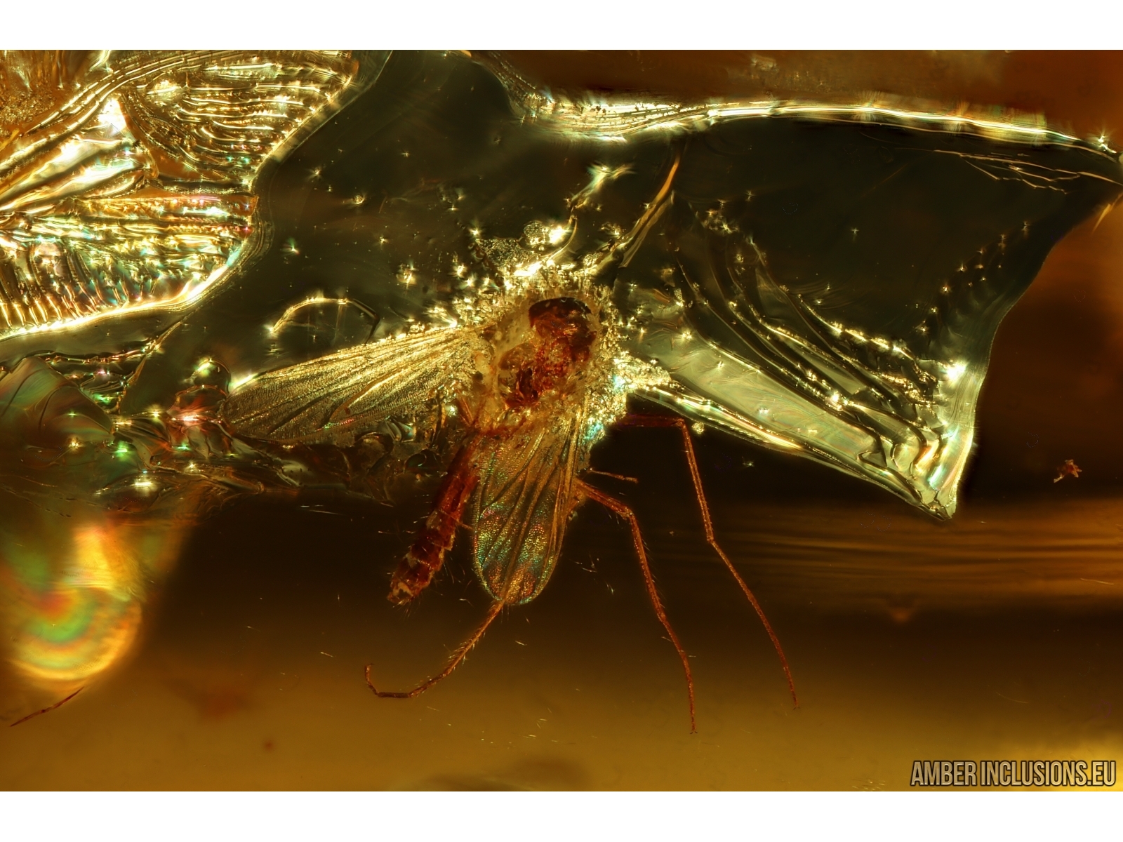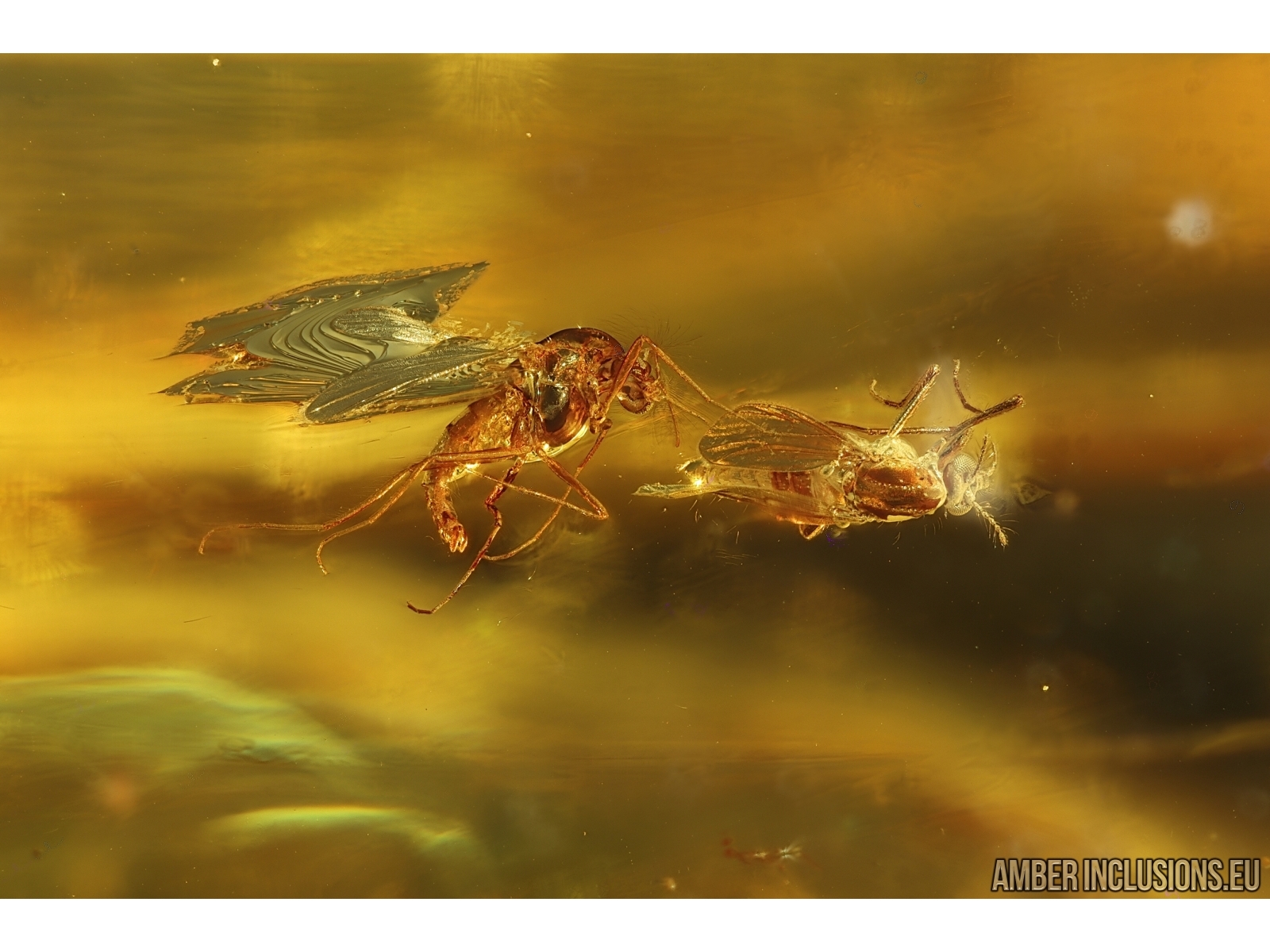 Baltic amber stone with fossil inclusions, trapped 34-56 million years ago - Many True midges Chironomidae.