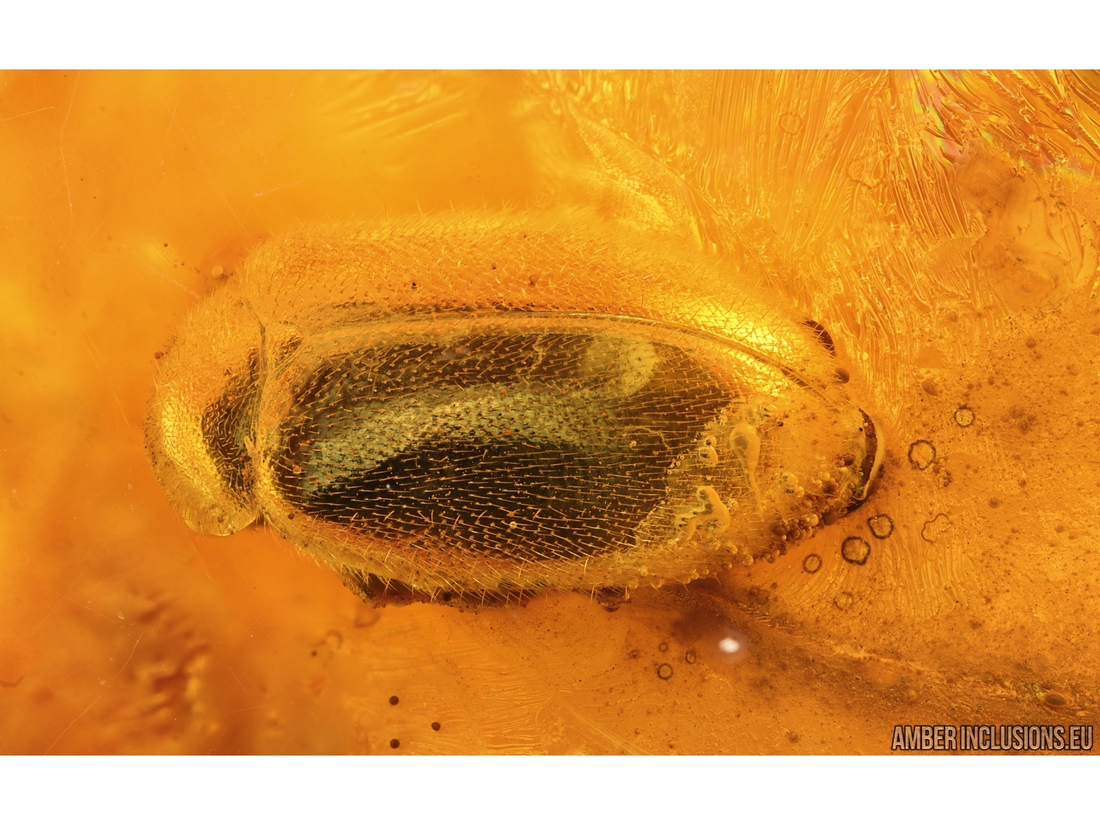 Baltic amber stone with fossil inclusion, trapped 34-56 million years ago - Marsh Beetle Scirtidae.