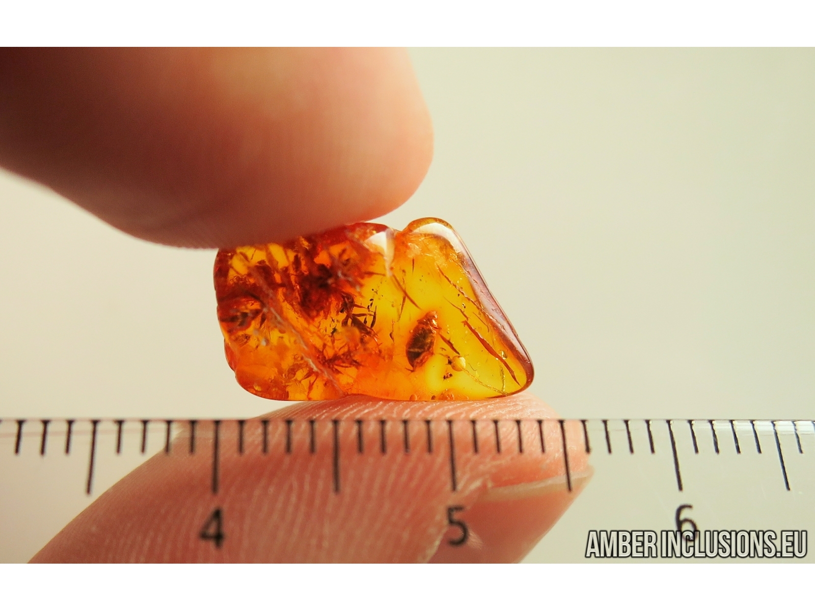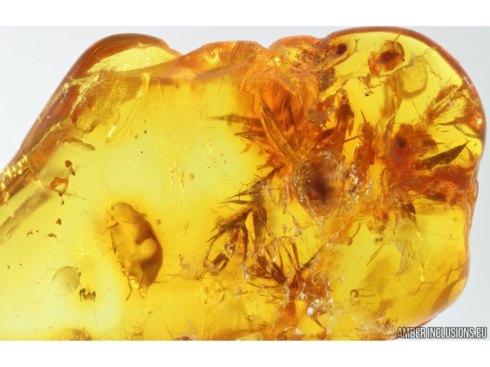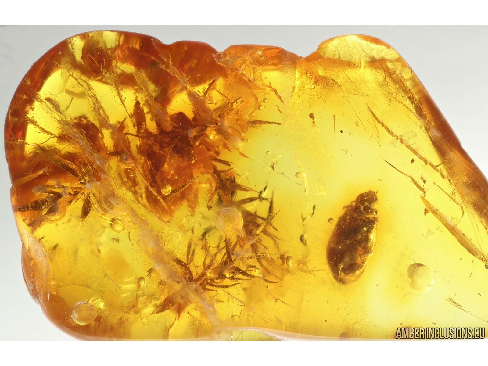 Baltic amber stone with fossil inclusions, trapped 34-56 million years ago - Moss and Beetle.