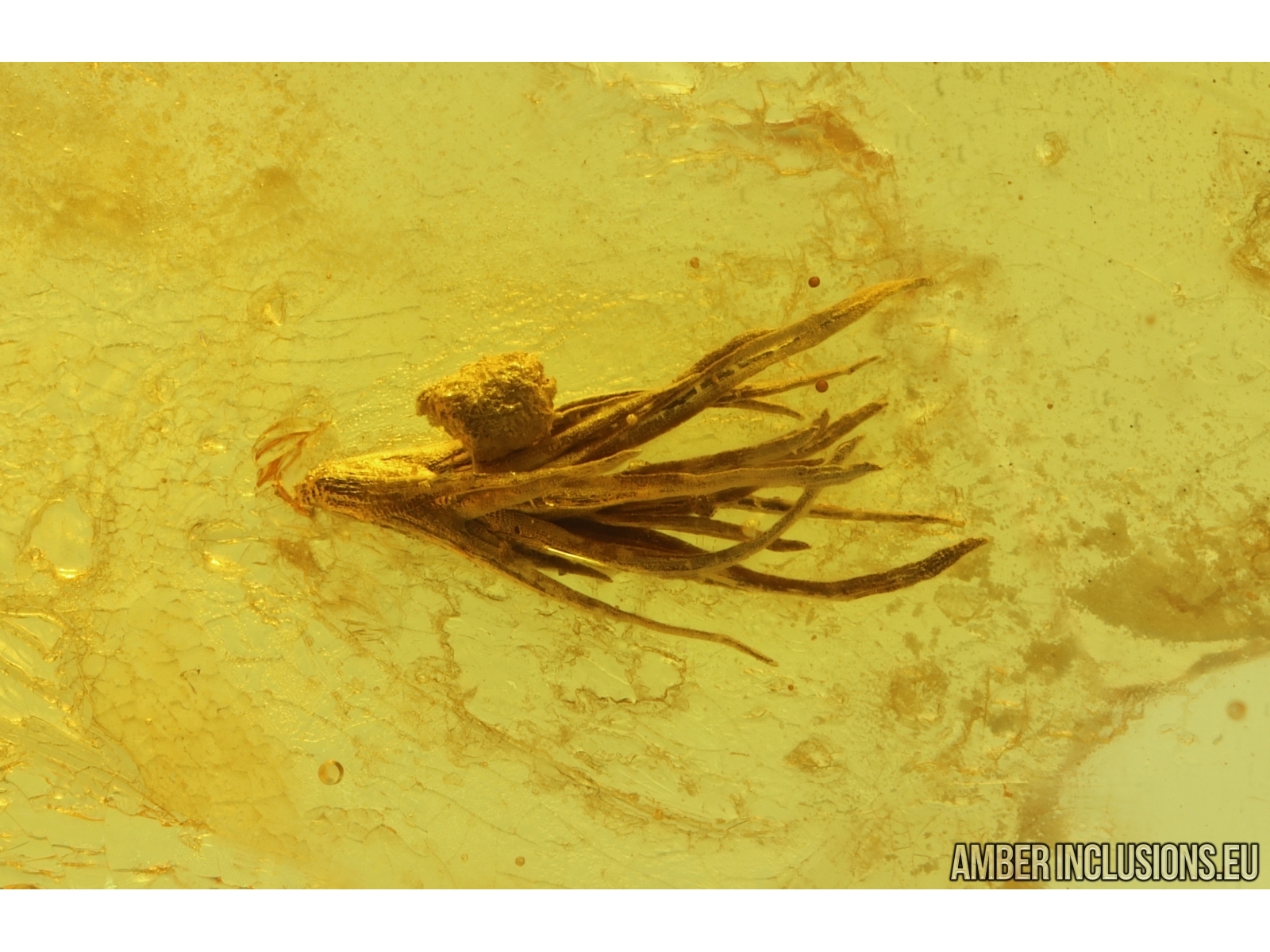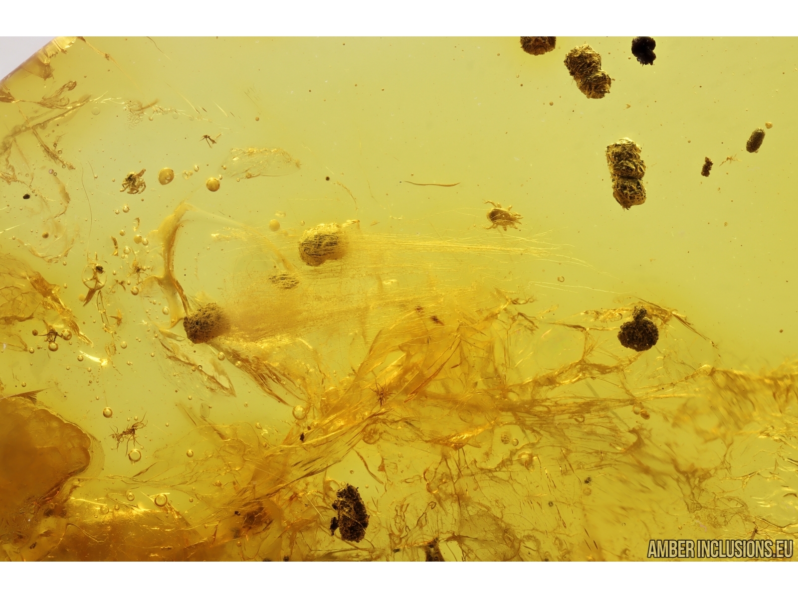 Baltic amber stone with fossil inclusions, trapped 34-56 million years ago - Moss, Coprolites and Fungi.