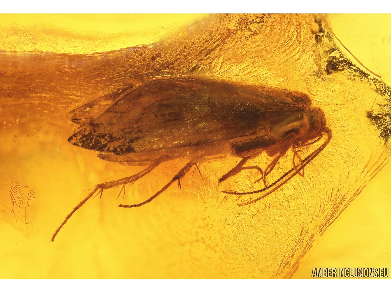 Baltic amber stone with fossil inclusion, trapped 34-56 million years ago - Moth Lepidoptera.