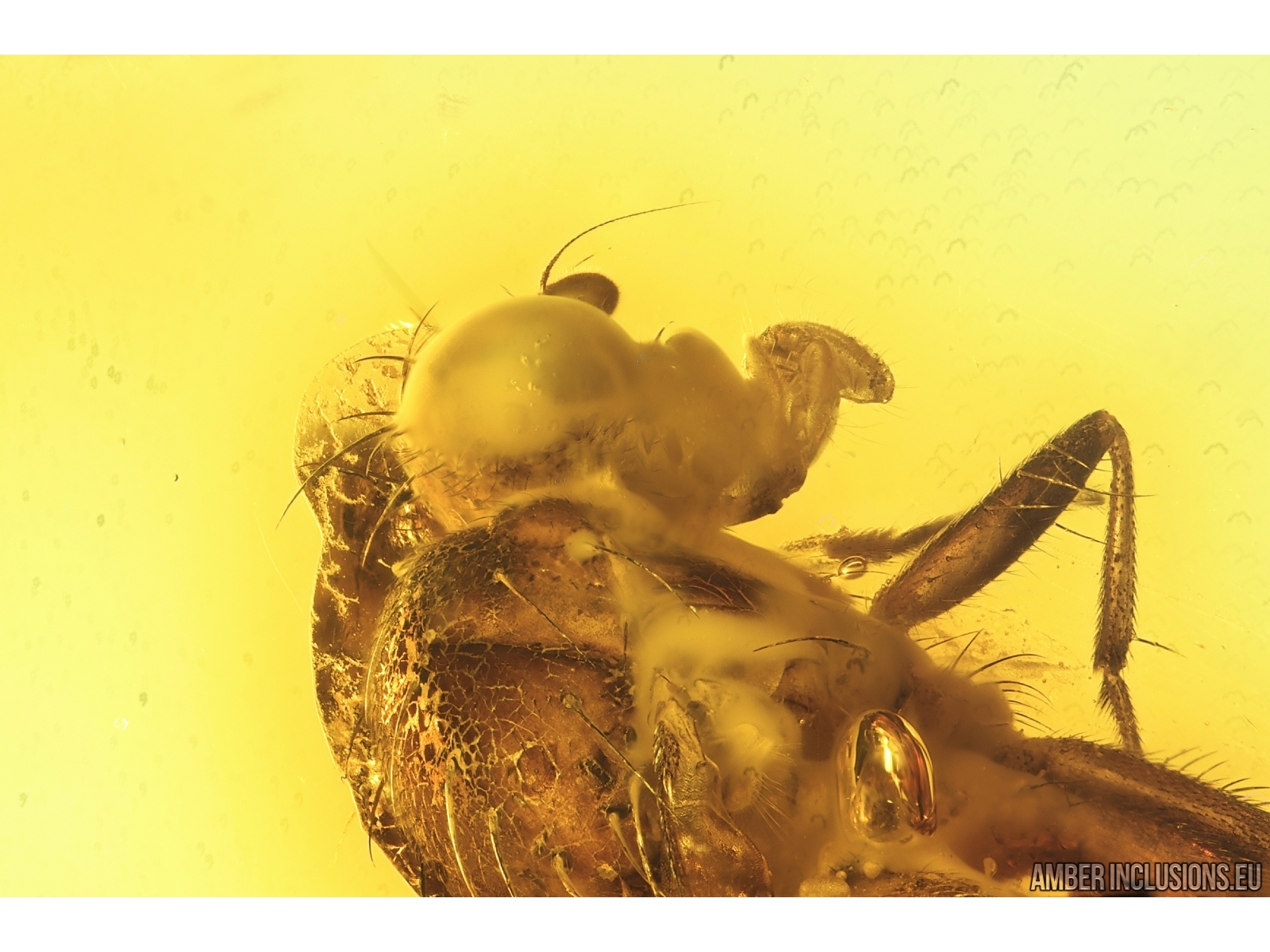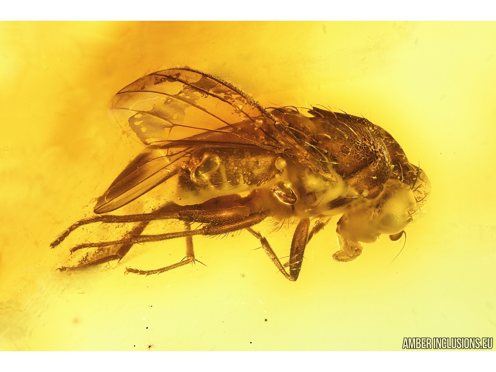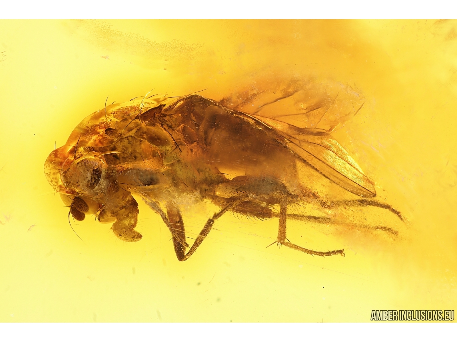 Baltic amber stone with fossil inclusion - Nice Muscoid fly Acalyptratae.