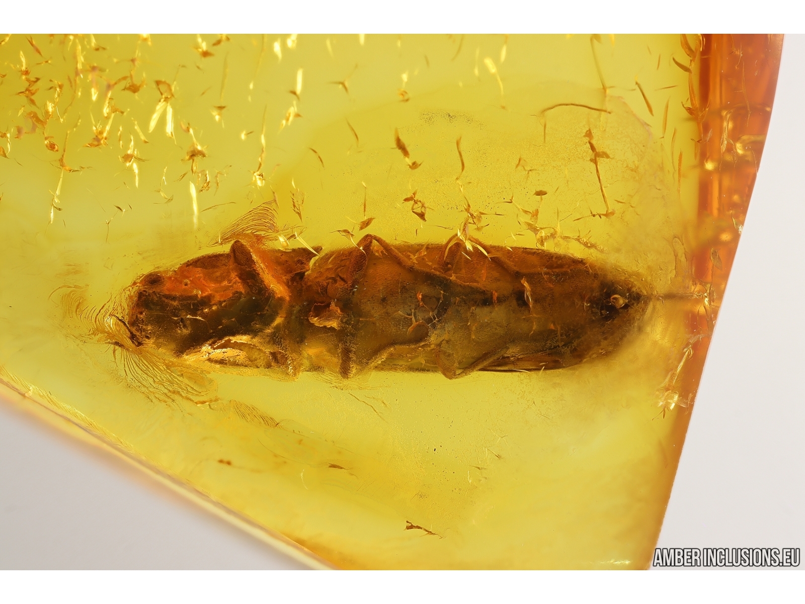 Baltic amber stone with fossil inclusion, trapped 34-56 million years ago -Nice Click beetle Elateridae.