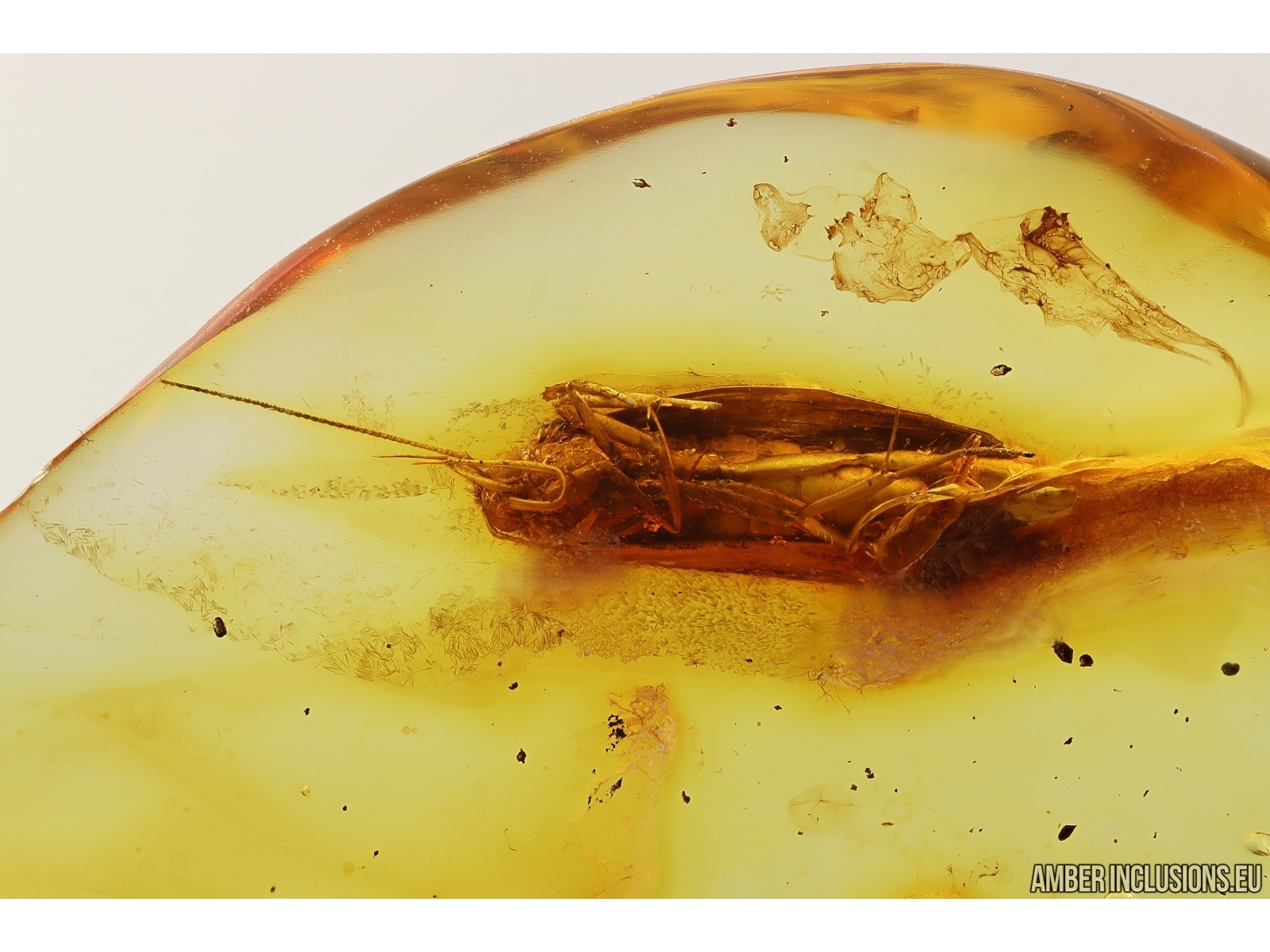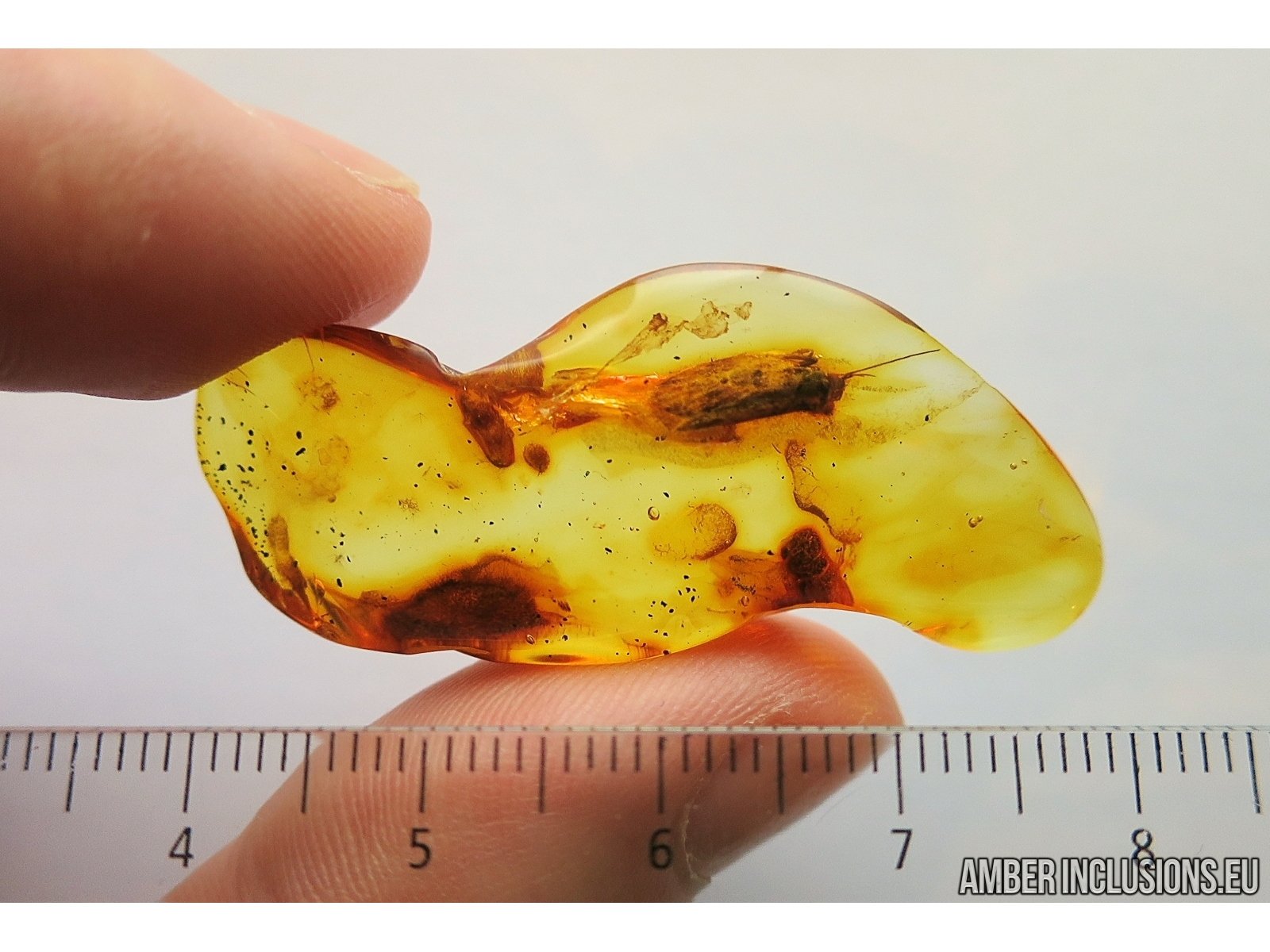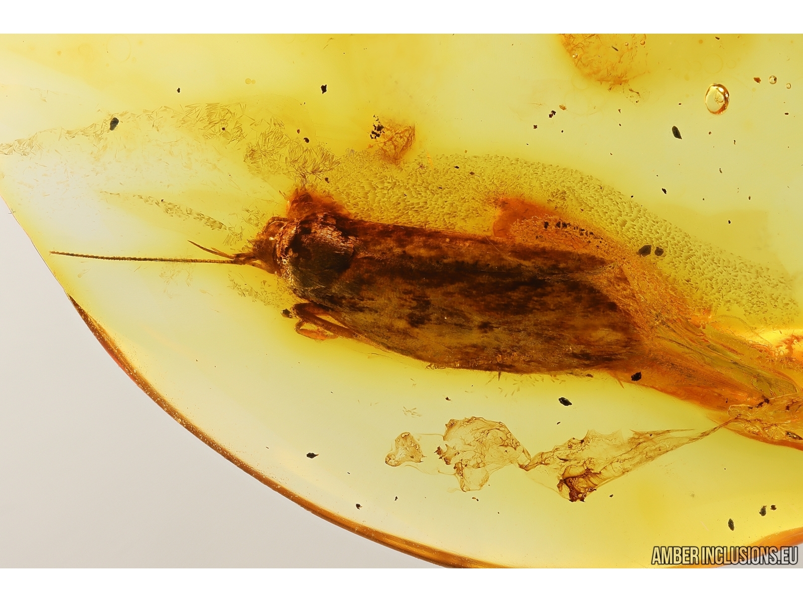 Baltic amber stone with fossil inclusion, trapped 34-56 million years ago - Moth Lepidoptera.