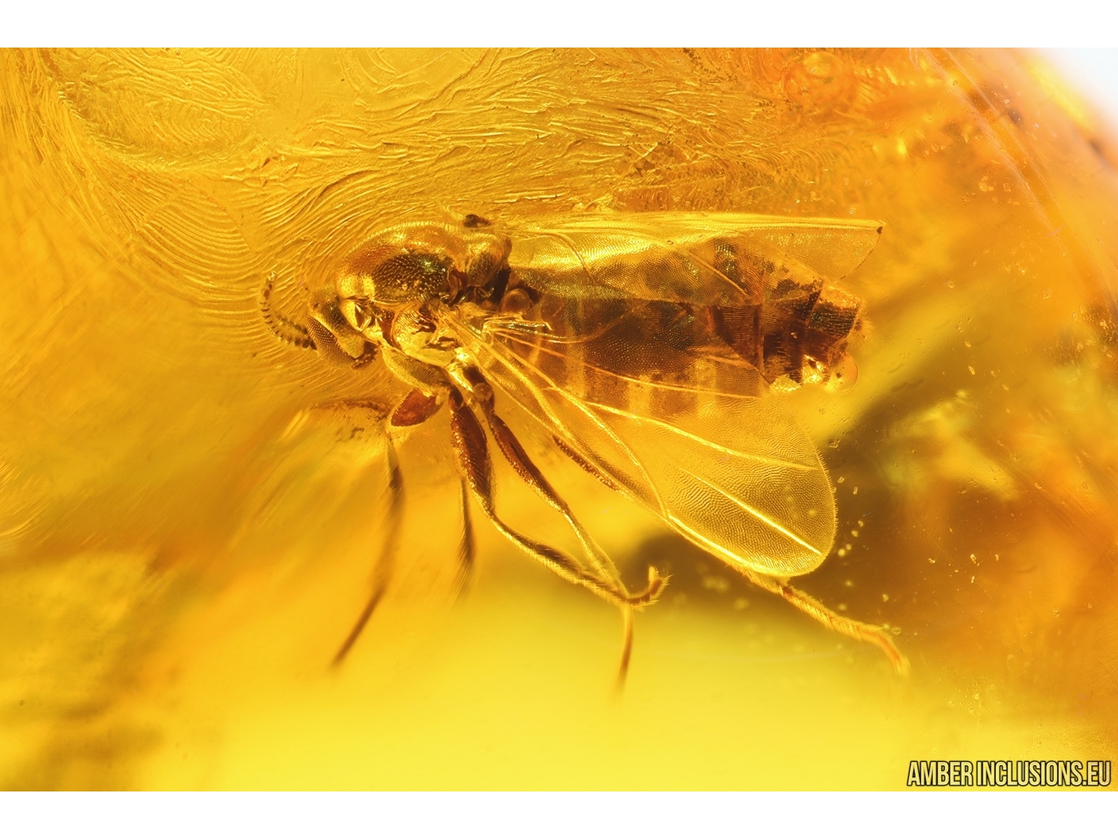 Baltic amber stone with fossil inclusion, , trapped 34-56 million years ago - Nice Black Scavenger fly Scatopsidae
