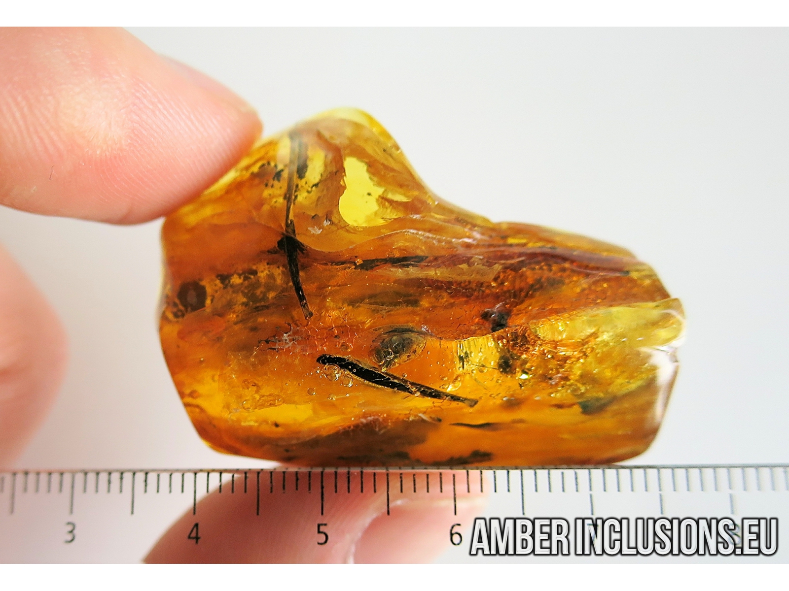 Baltic amber stone with fossil inclusions, trapped 34-56 million years ago - Nice Bud and Two Leaves.