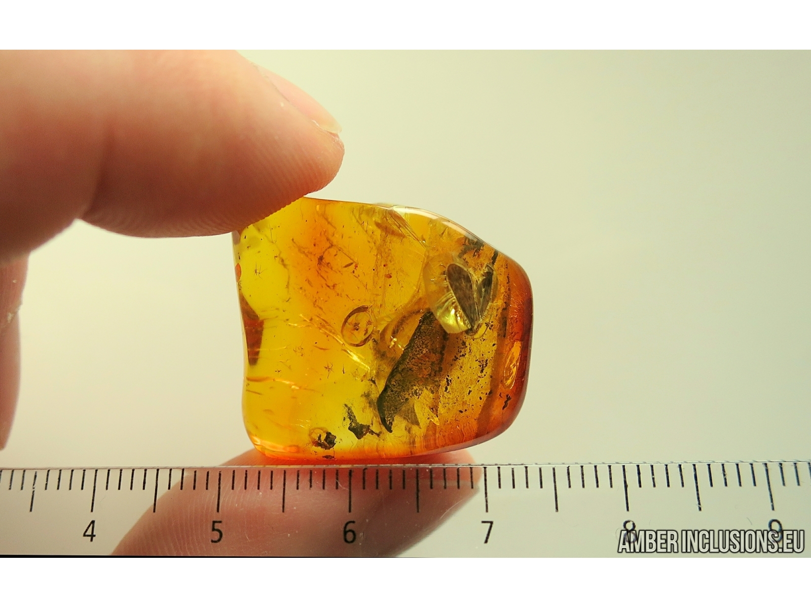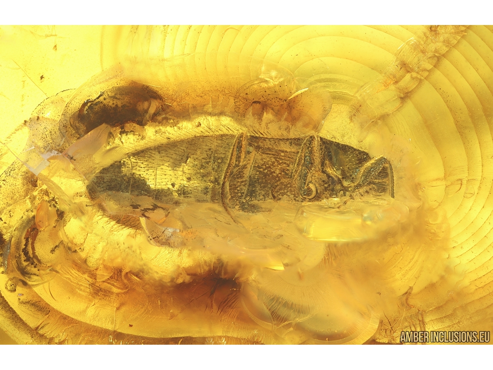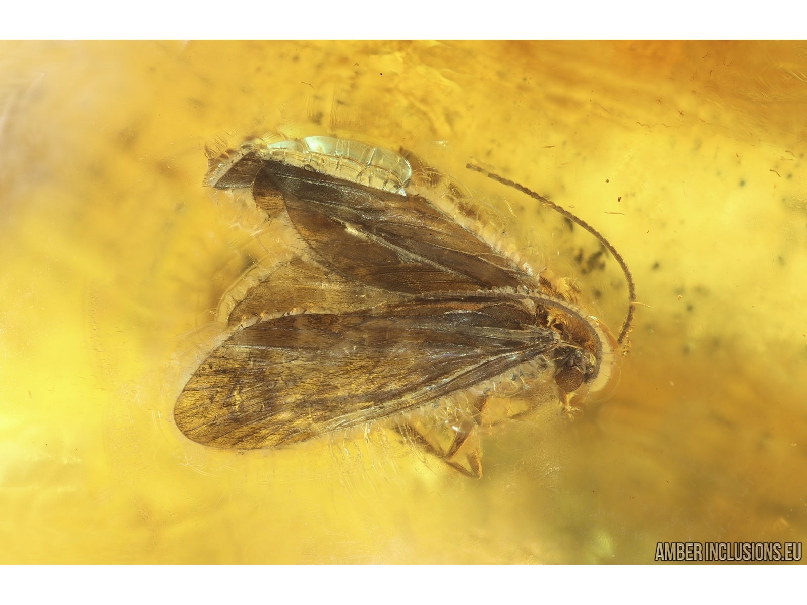 Baltic amber stone with fossil inclusions, trapped 34-56 million years ago - Nice Caddisfly Trichoptera and Beetle.