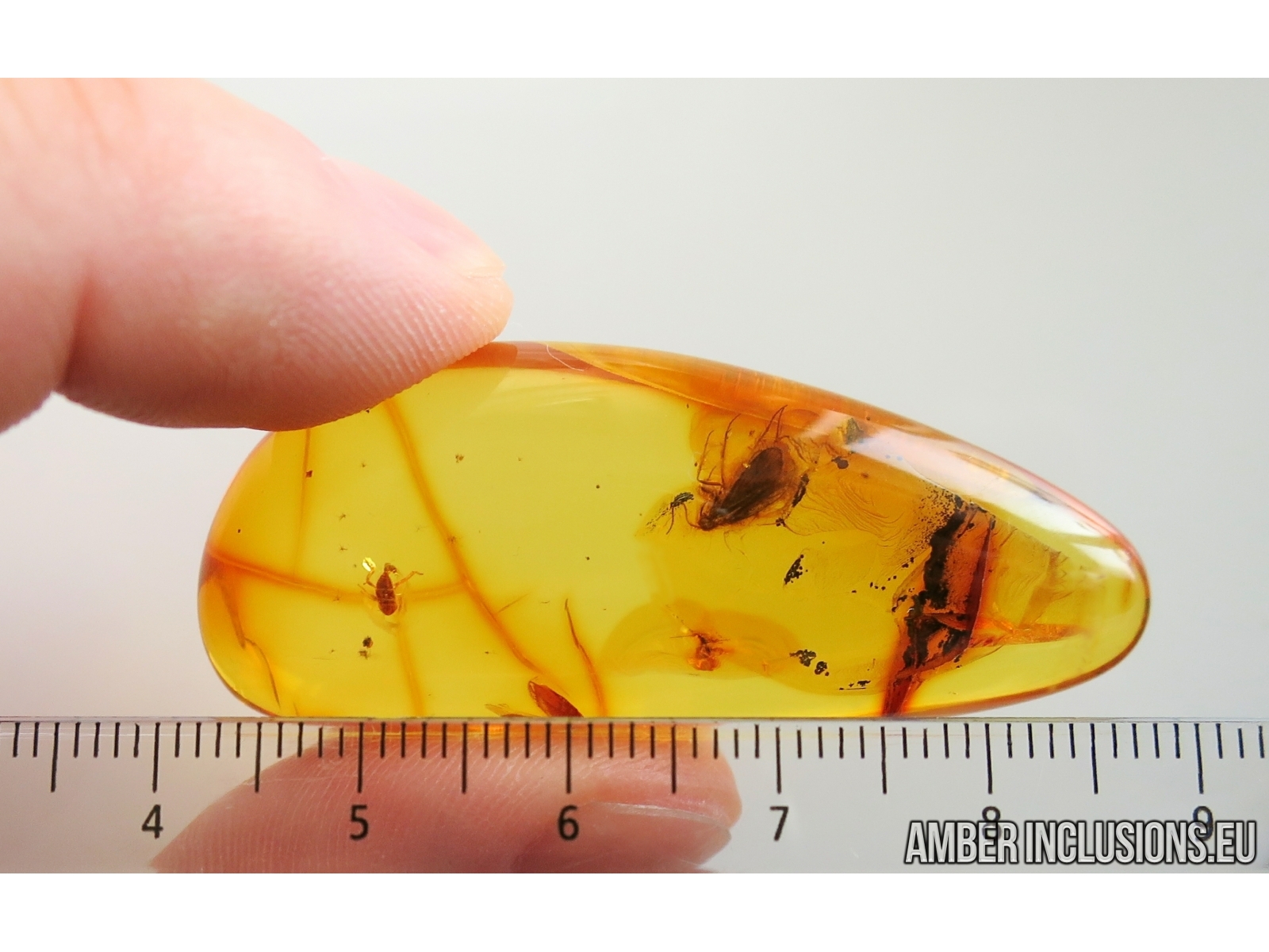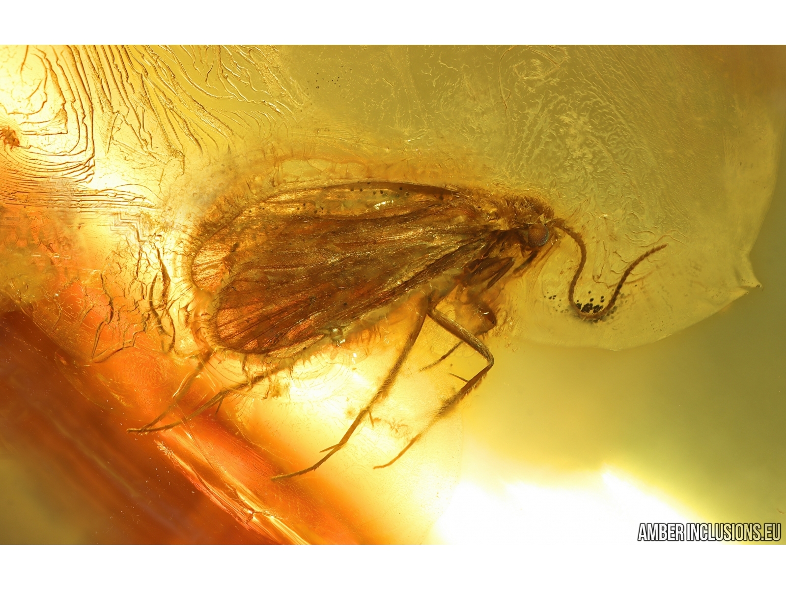 Baltic amber stone with fossil inclusions, trapped 34-56 million years ago - Nice Caddisfly Trichoptera and Leafhopper Nymph.
