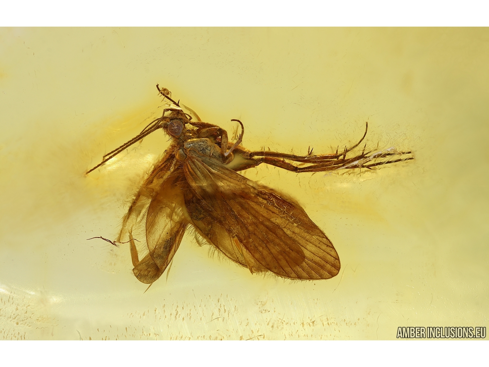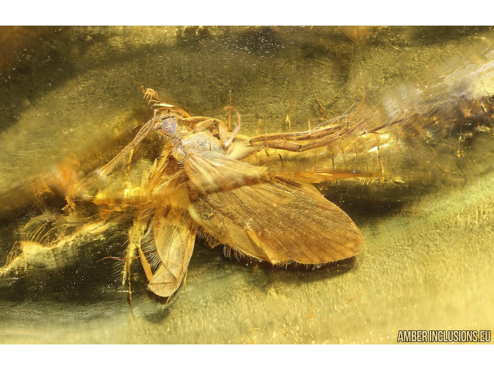 Baltic amber stone with fossil inclusion, trapped 34-56 million years ago - Nice Caddisfly Trichoptera