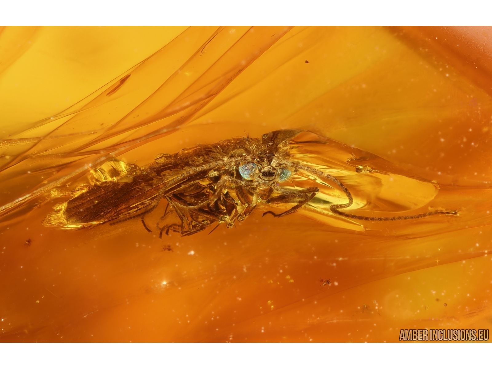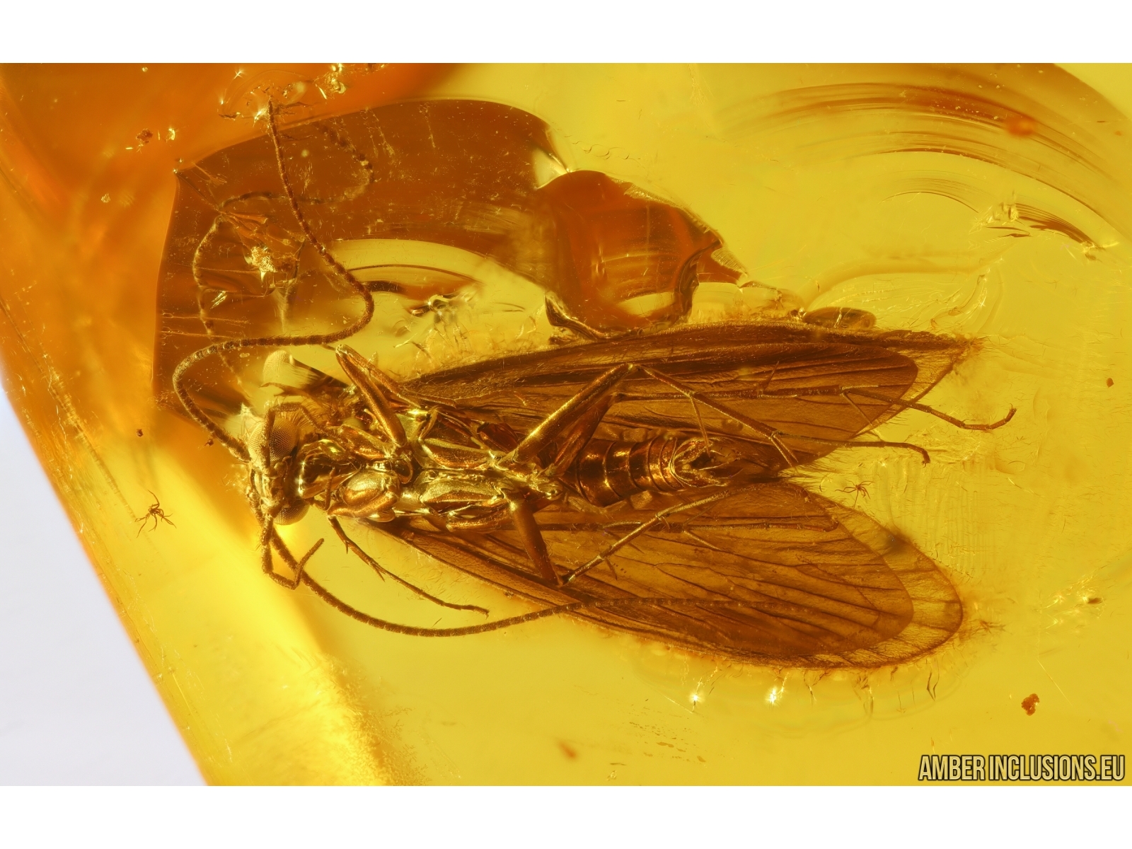 Baltic amber stone with fossil inclusion, trapped 34-56 million years ago - Nice Caddisfly Trichoptera