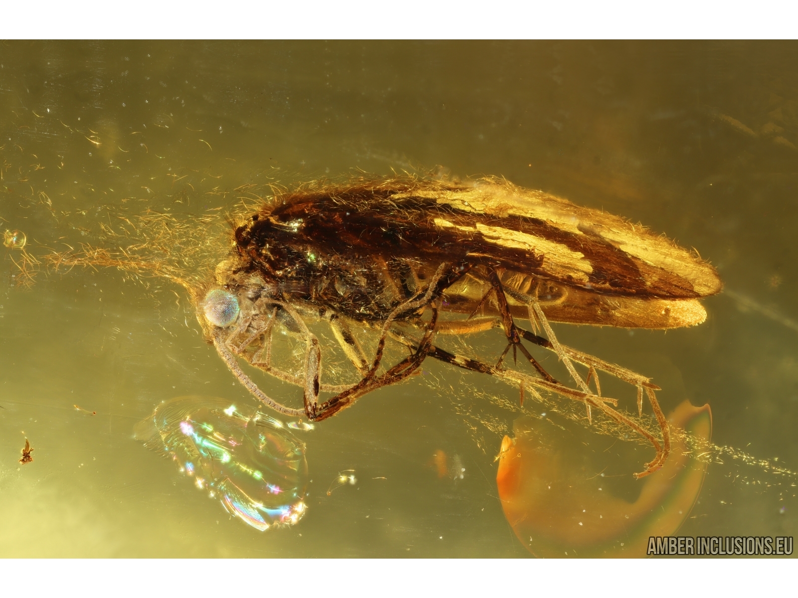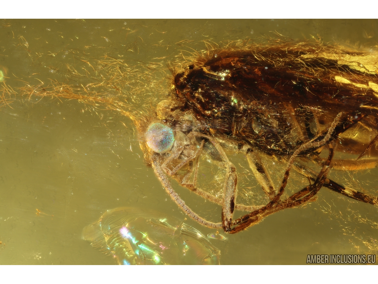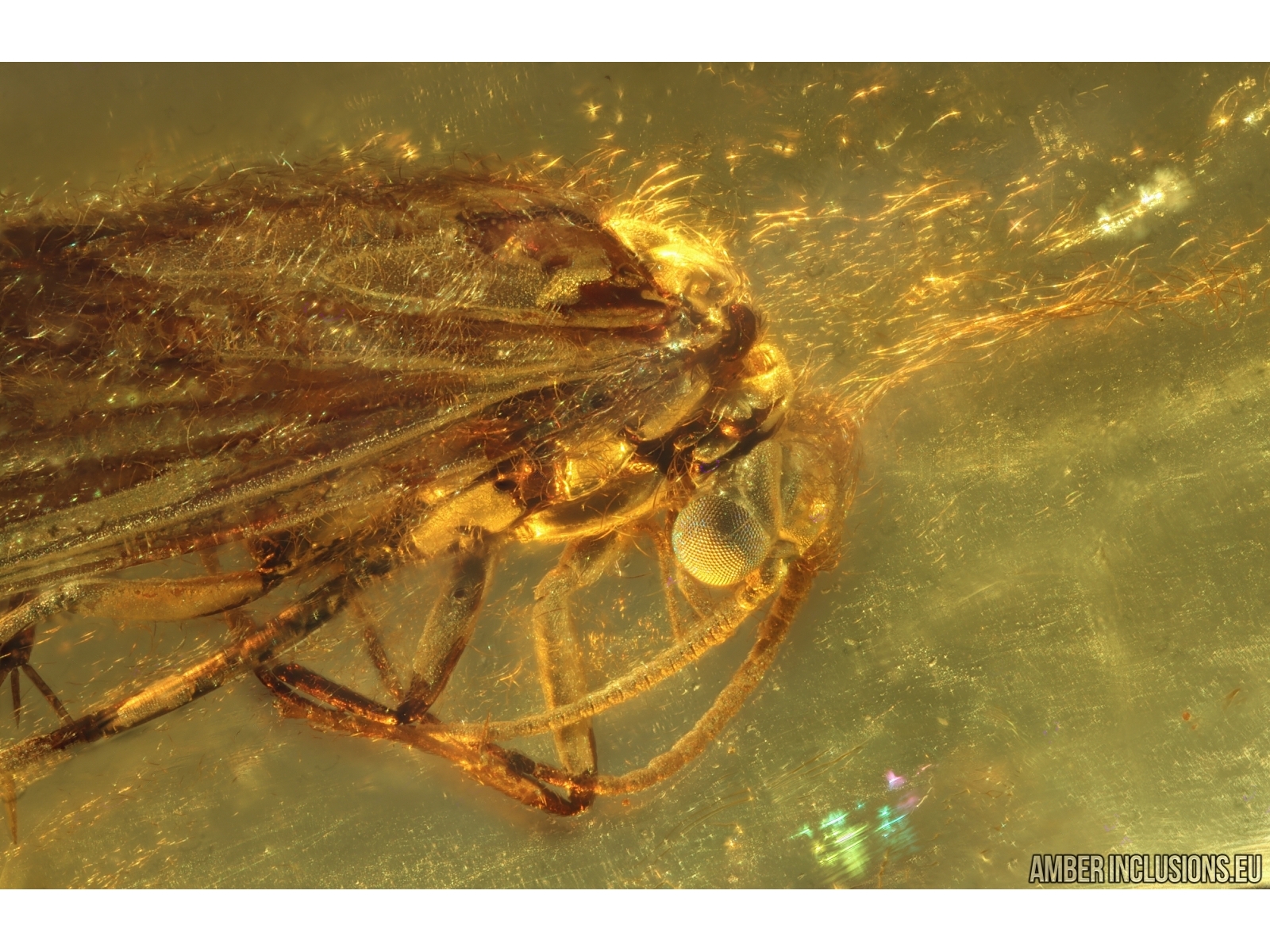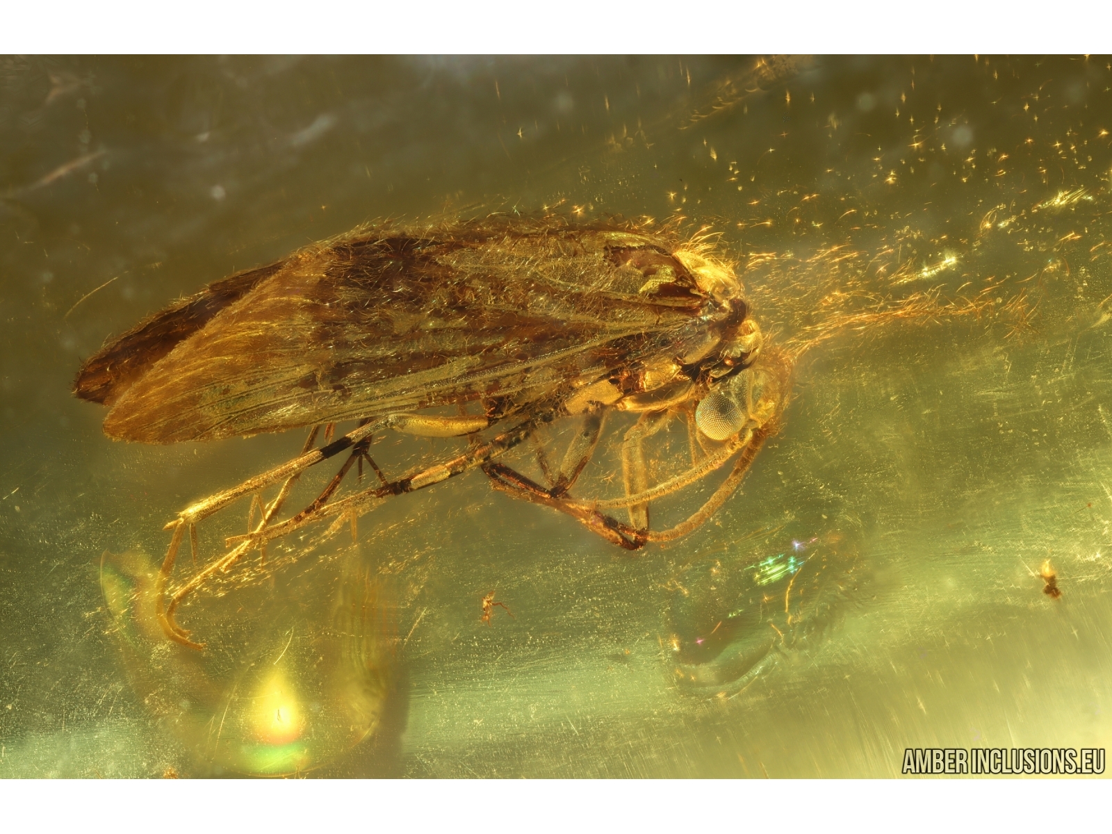 Baltic amber stone with fossil inclusion, trapped 34-56 million years ago - Nice Caddisfly Trichoptera