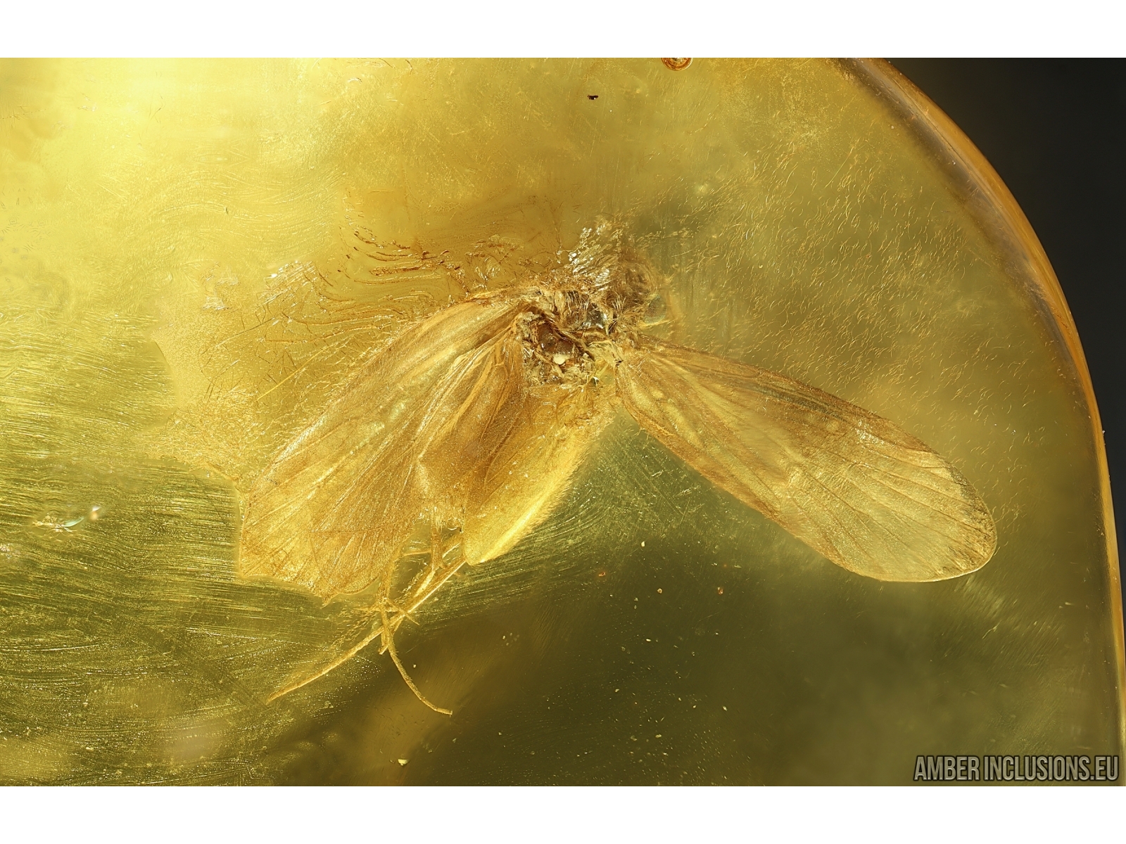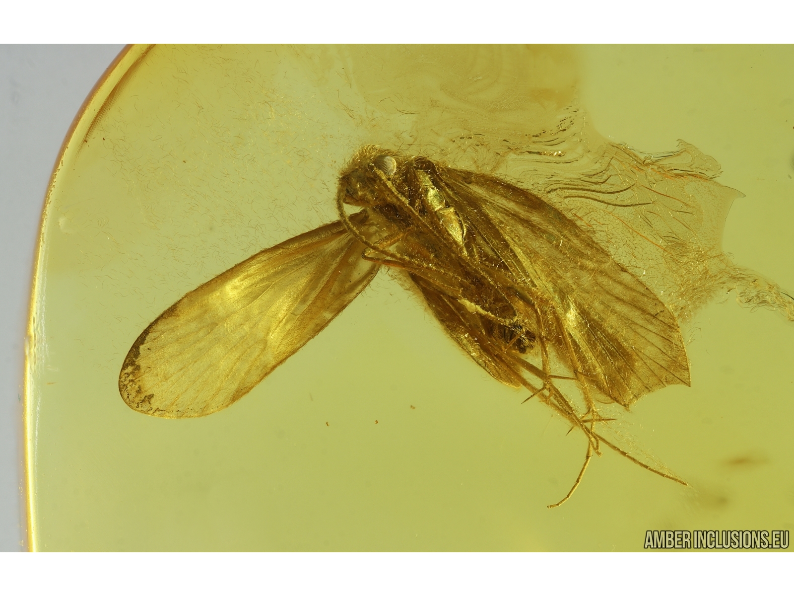 Baltic amber stone with fossil inclusion, trapped 34-56 million years ago - Nice Caddisfly Trichoptera