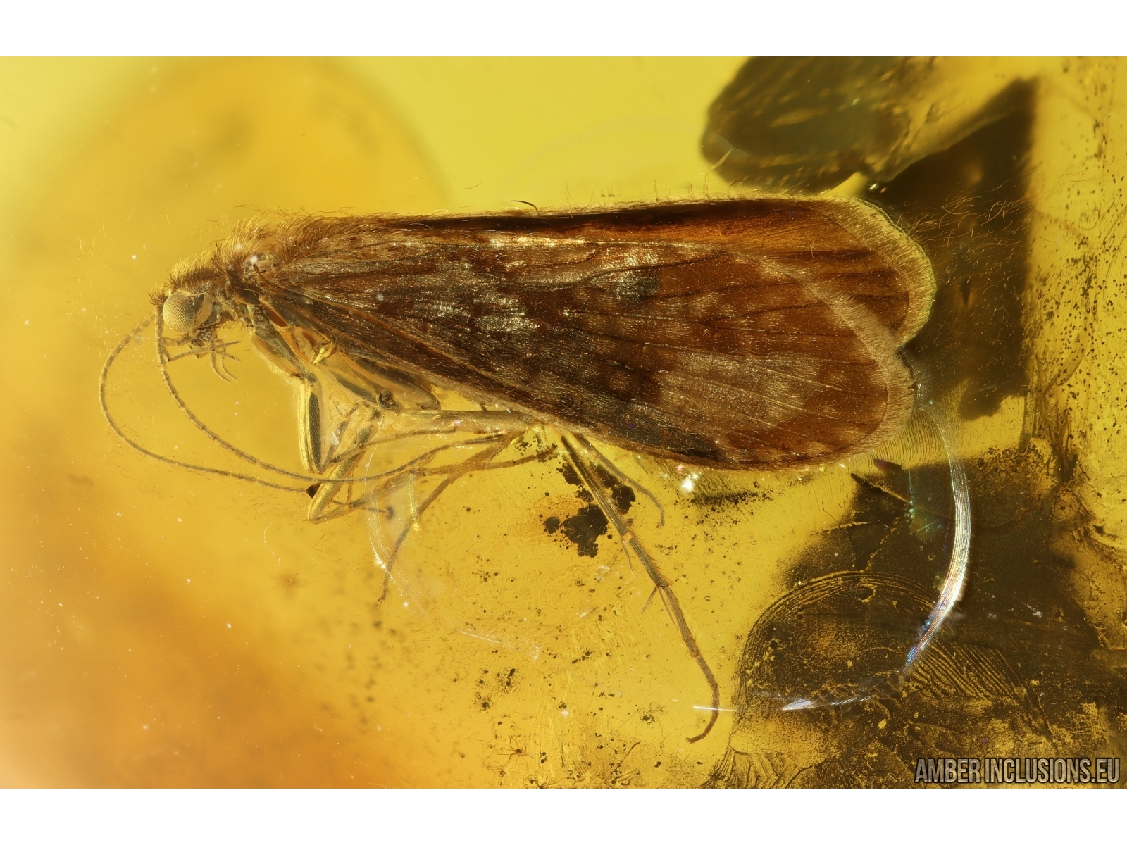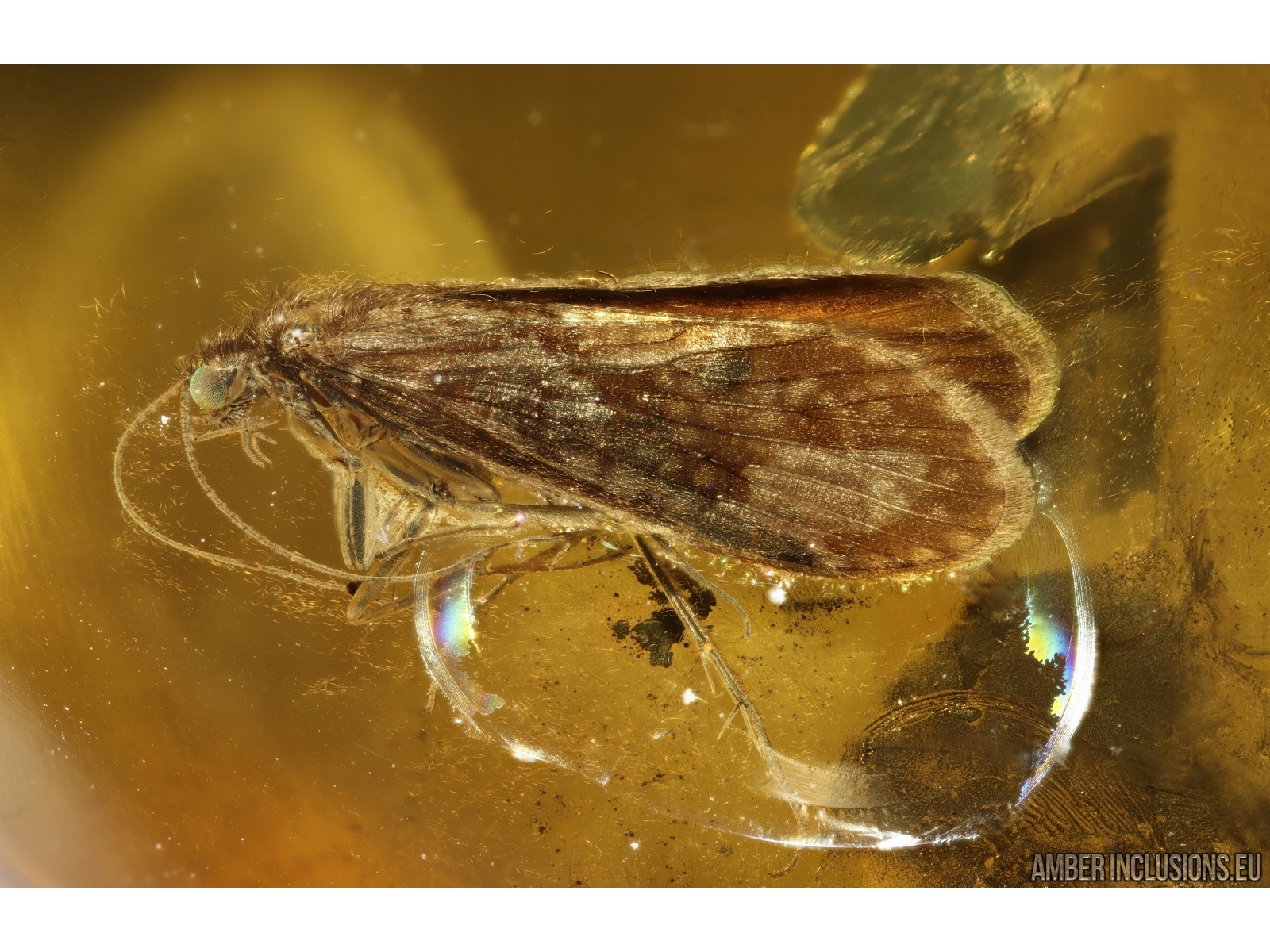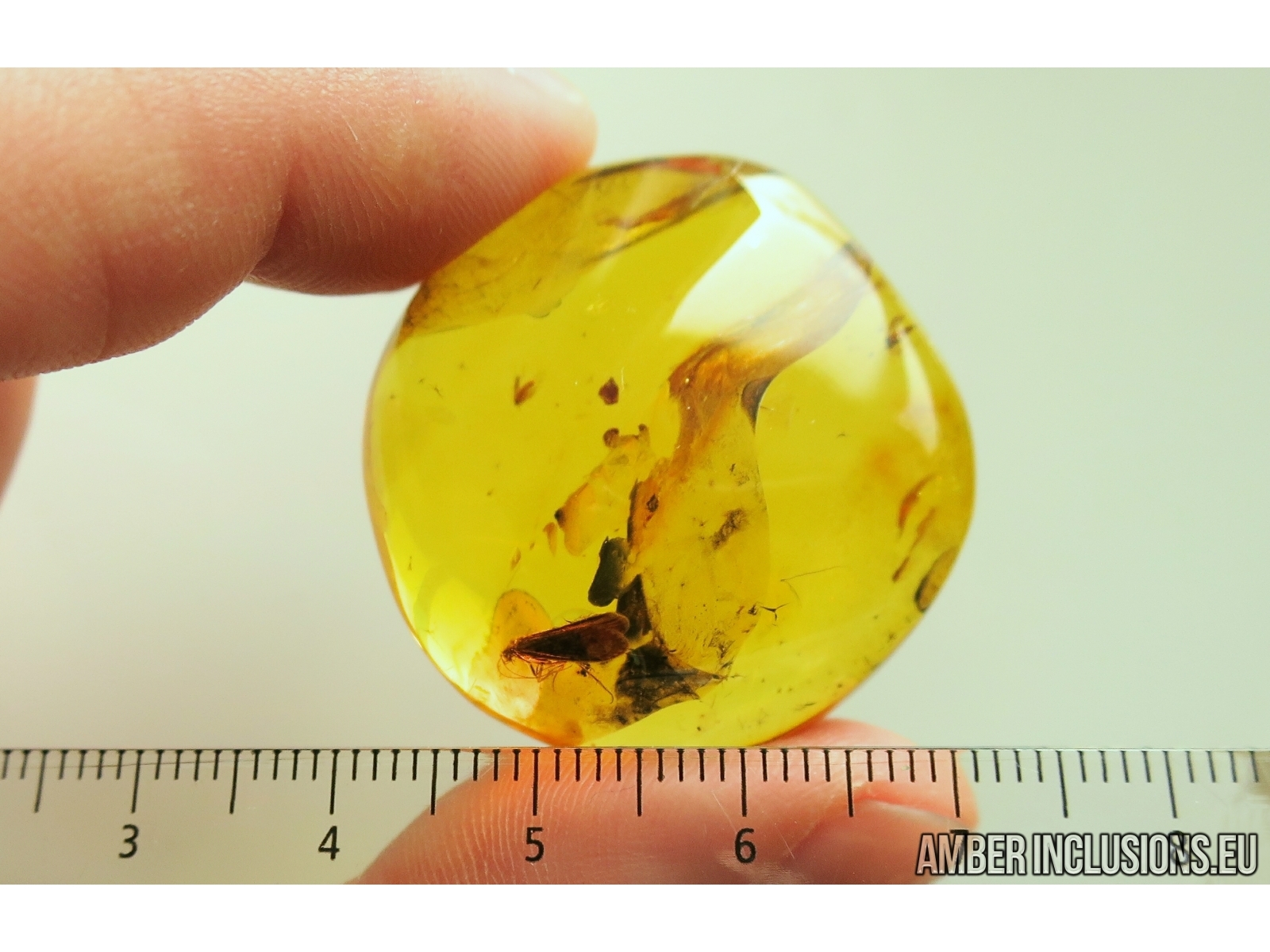 Baltic amber stone with fossil inclusion, trapped 34-56 million years ago - Nice Caddisfly Trichoptera
