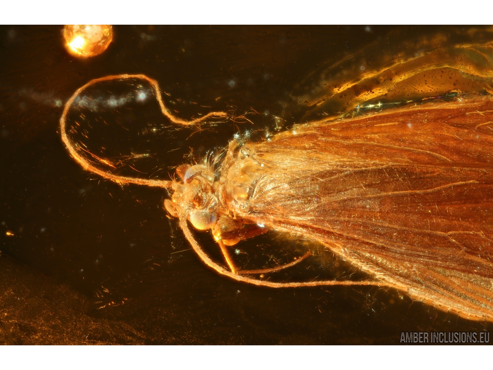 Baltic amber stone with fossil inclusion, trapped 34-56 million years ago - Nice Caddisfly Trichoptera