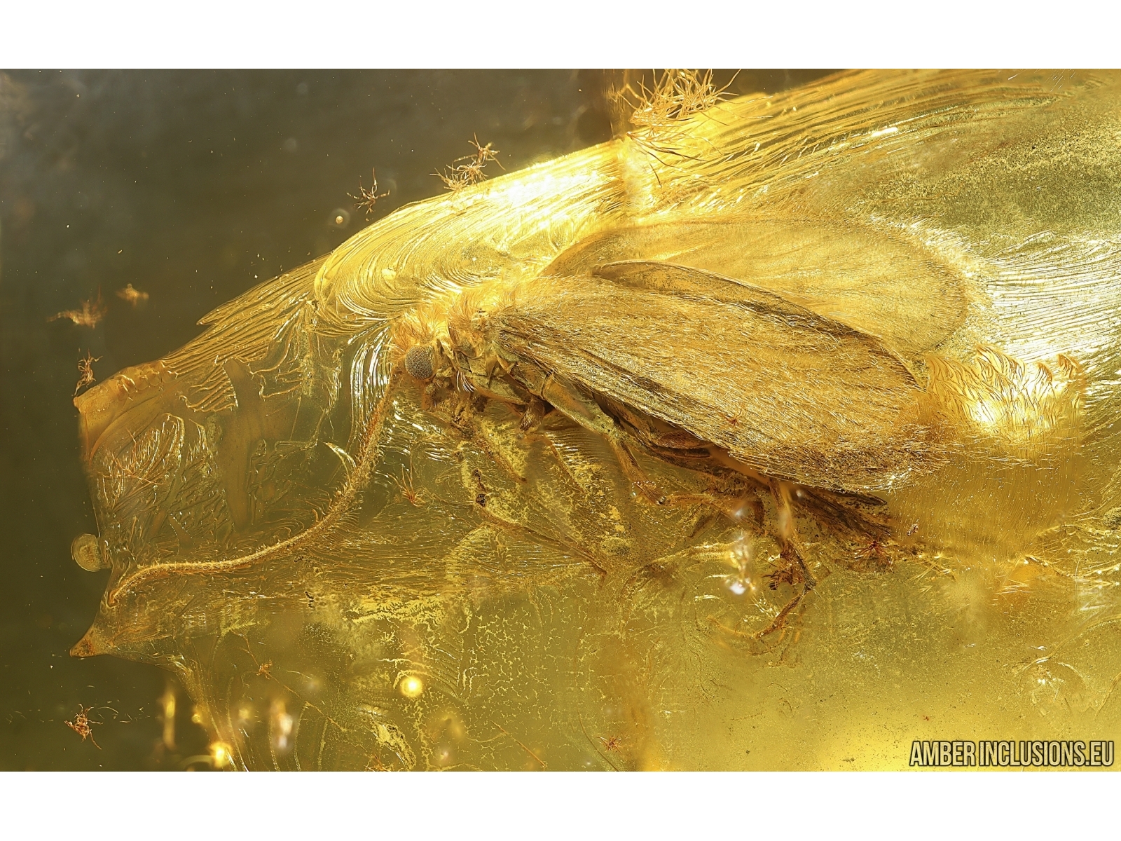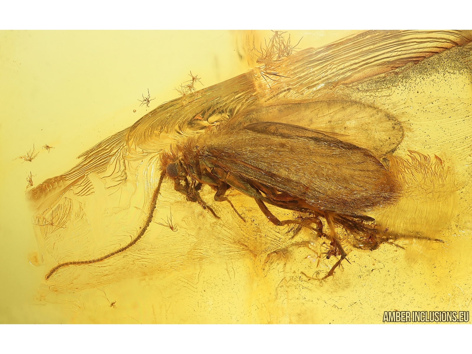 Baltic amber stone with fossil inclusion, trapped 34-56 million years ago - Nice Caddisfly Trichoptera