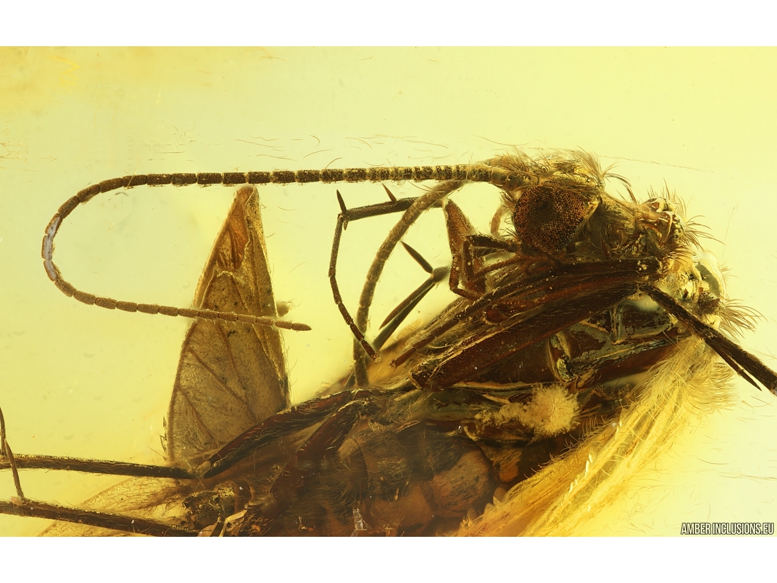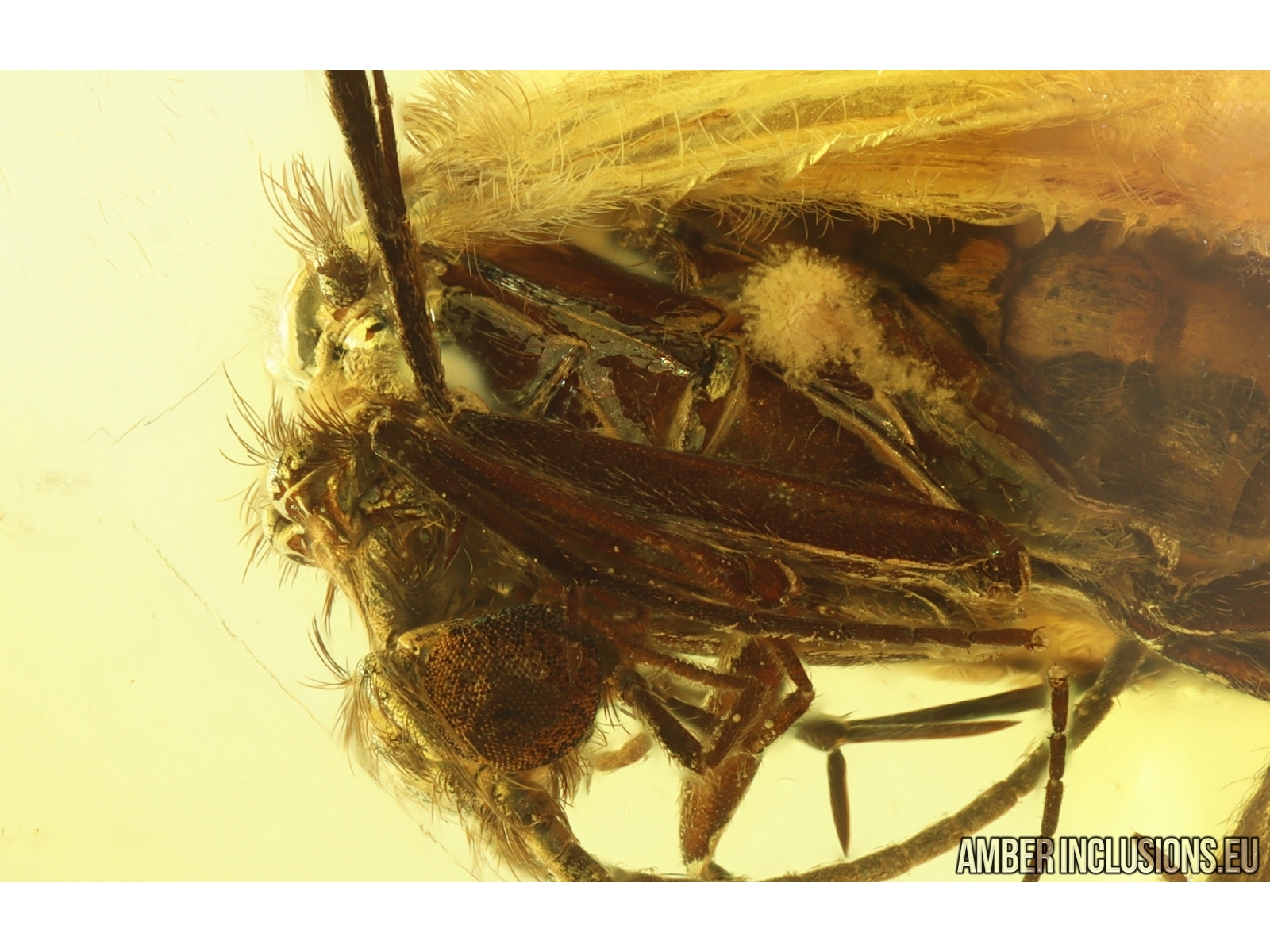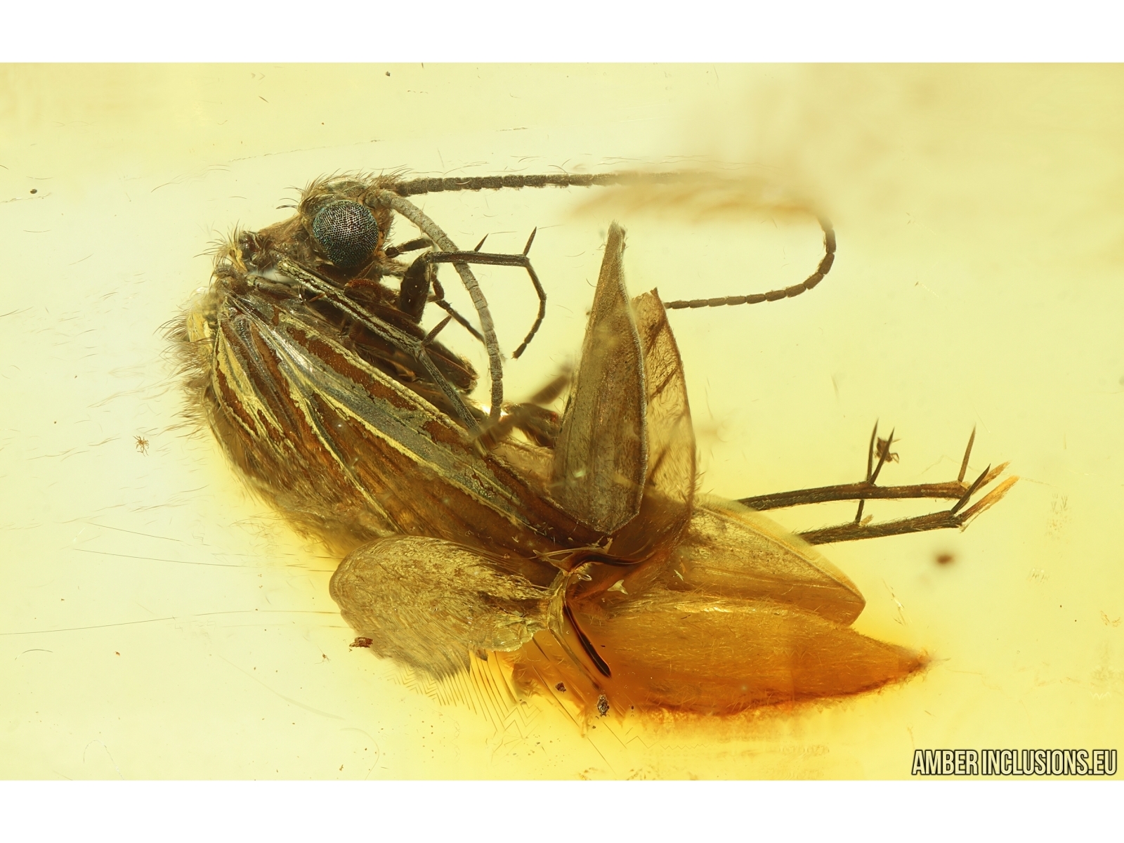 Baltic amber stone with fossil inclusion, trapped 34-56 million years ago - Nice Caddisfly Trichoptera