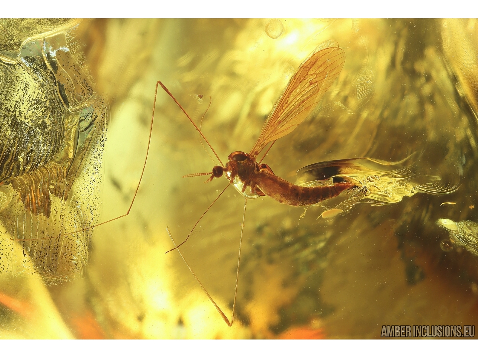 Ukrainian Rovno amber stone with fossil inclusions, trapped 34-56 million years ago - Nice Crane Fly Limoniidae, Big Caddisfly Trichoptera and Aphid Aphidoidea.