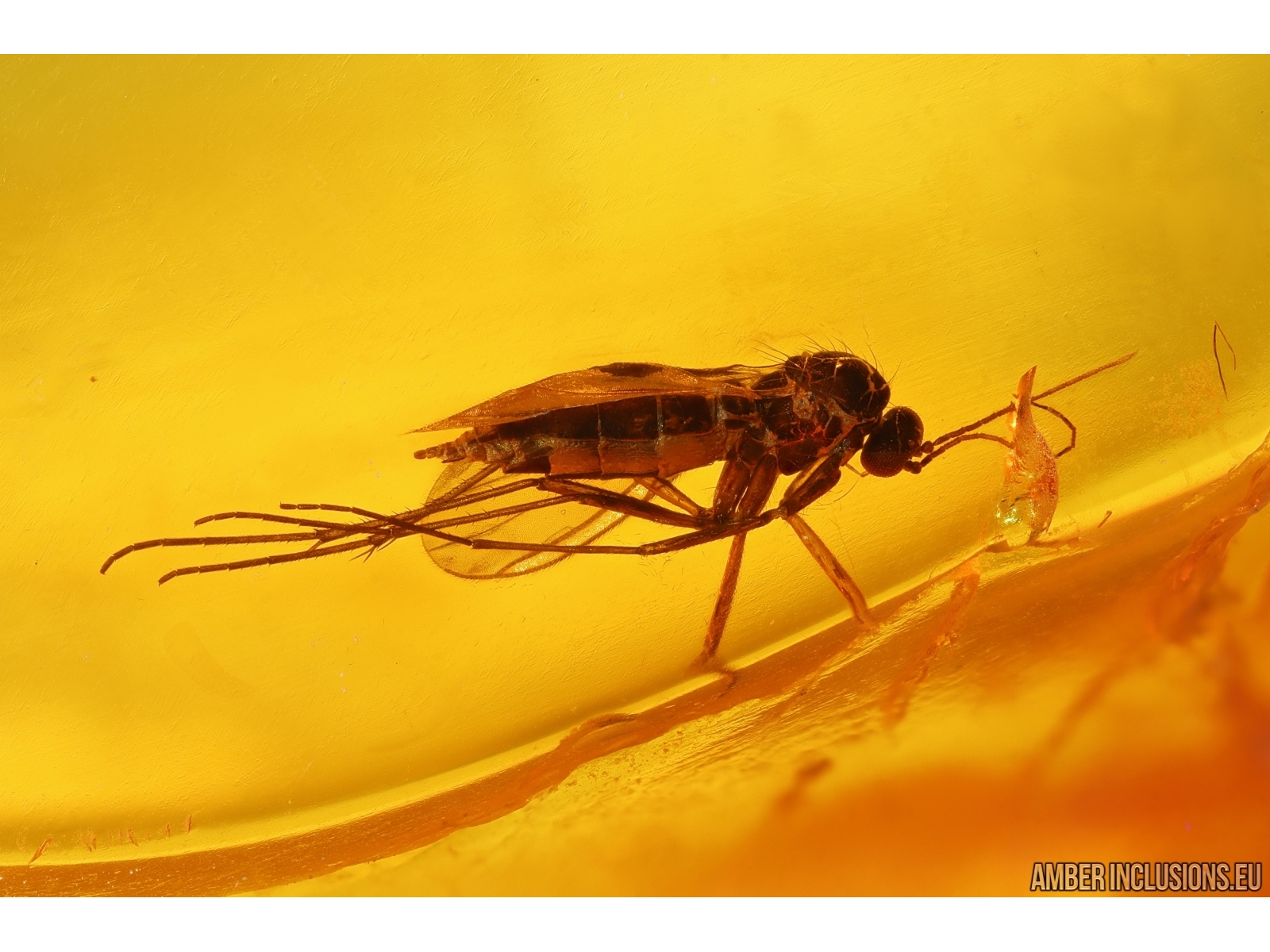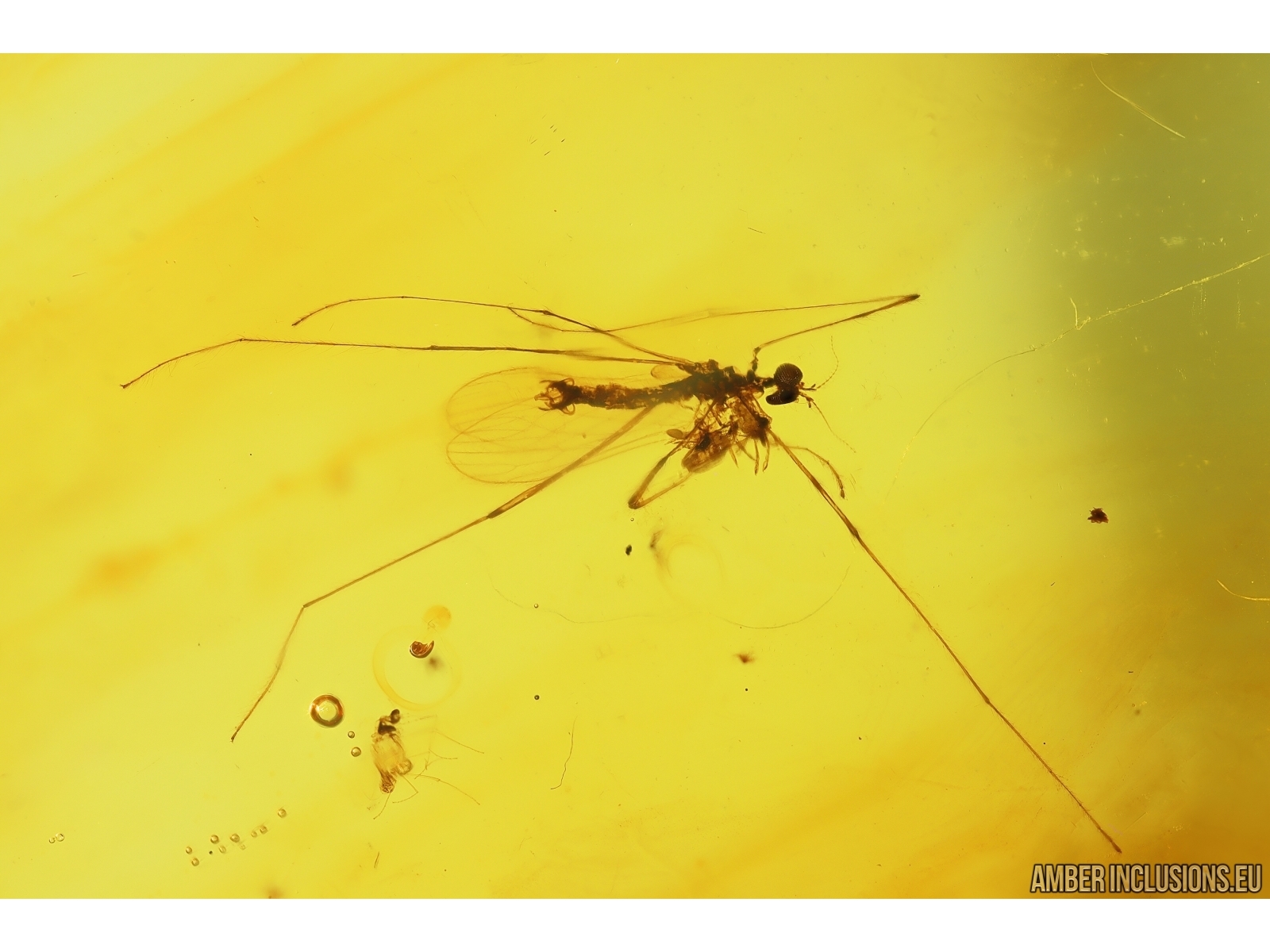 Baltic amber stone with fossil inclusions, trapped 34-56 million years ago - Crane fly Limoniidae and more.