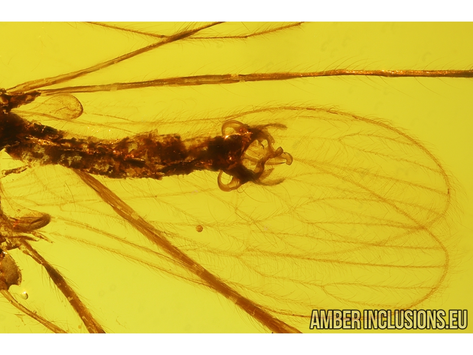 It weighs 4 g. Measurements of stone 41x27x7mm, length of crane fly body~2.5mm, max ~10mm.