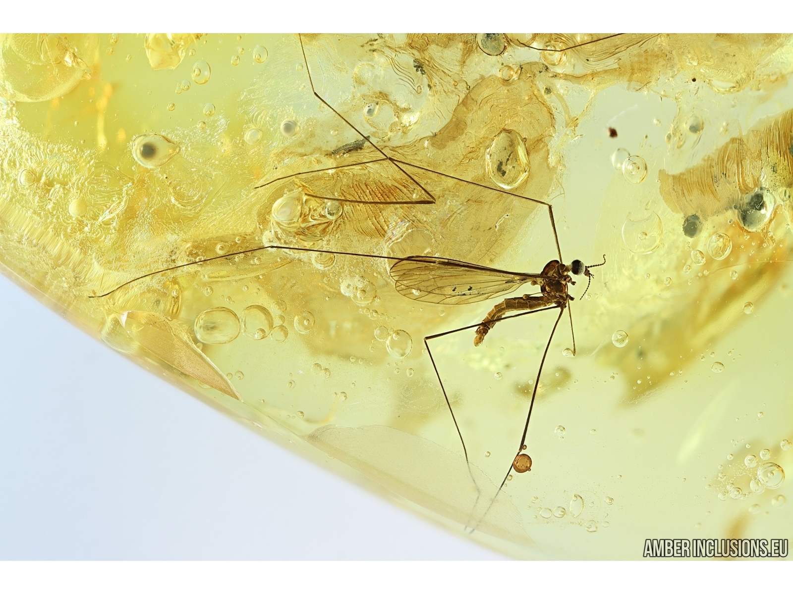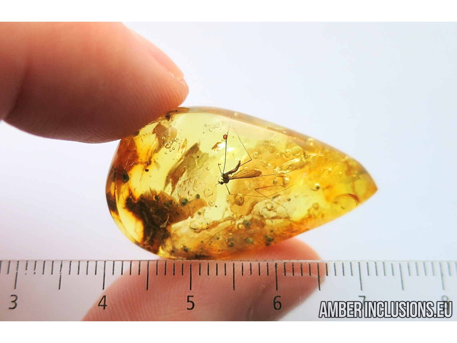 Ukrainian Rovno amber stone with fossil inclusion, trapped 34-56 million years ago -Crane fly Limoniidae.