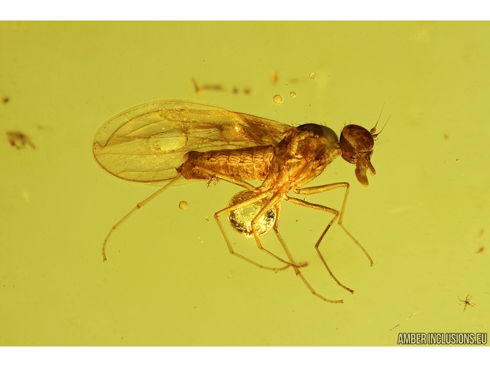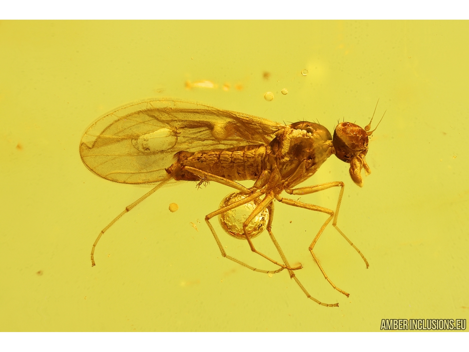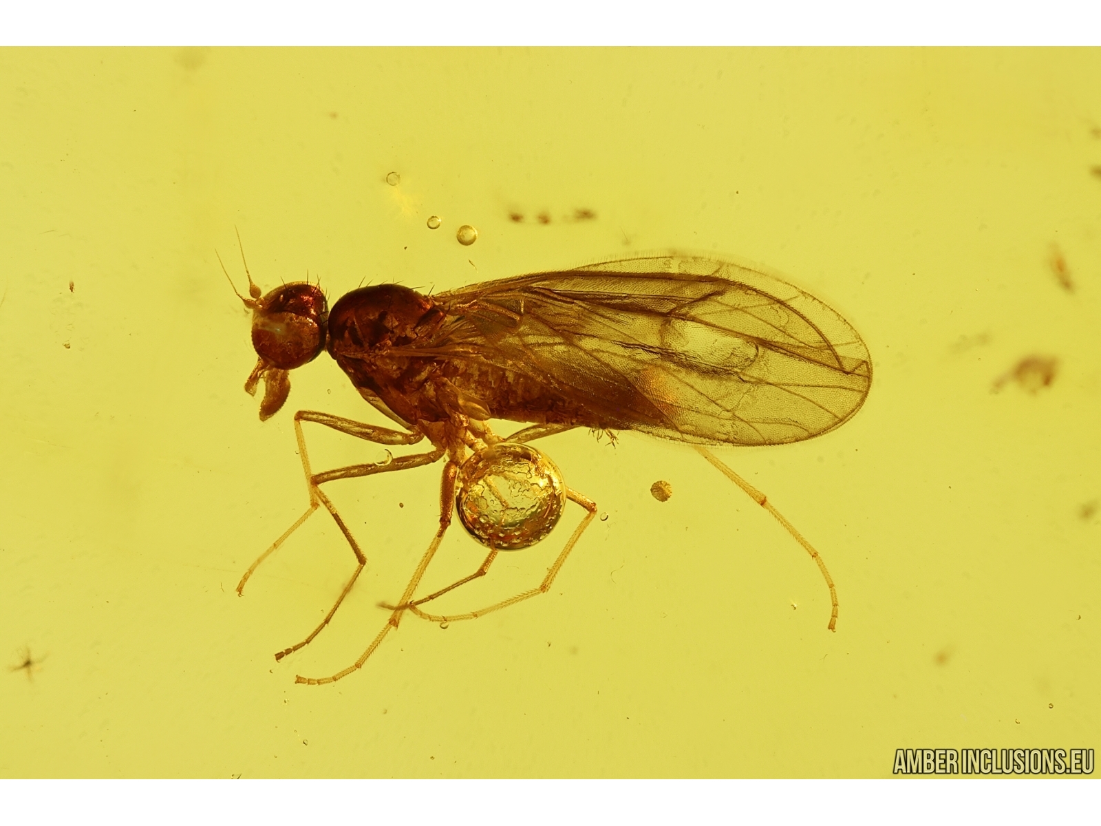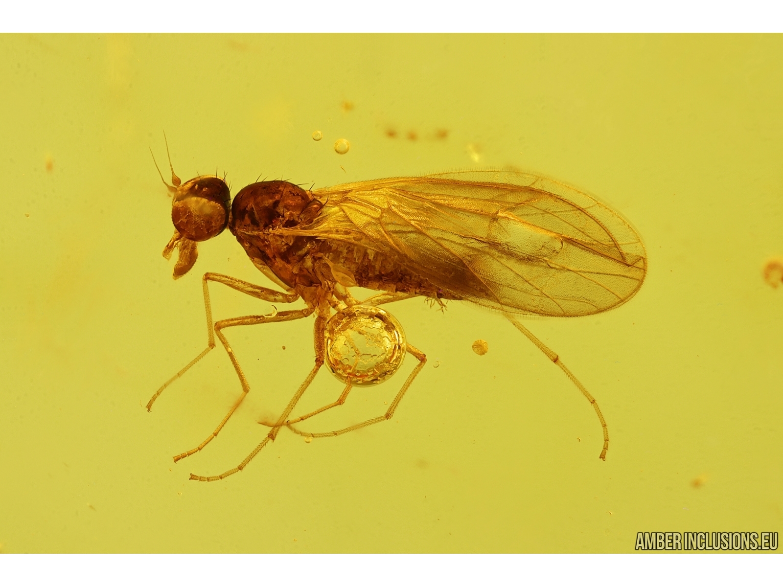 Baltic amber stone with fossil inclusion- Dance fly Empididae.