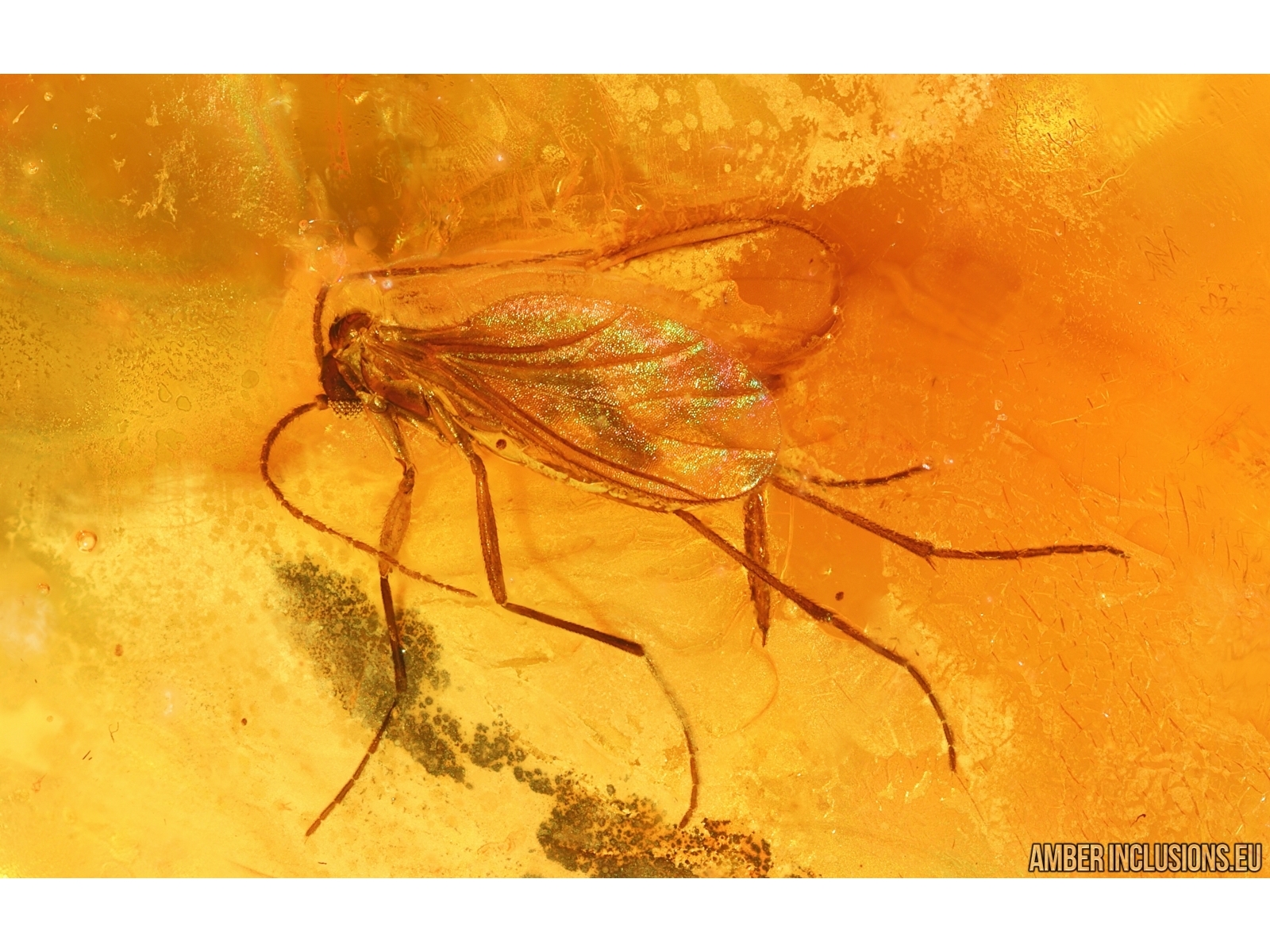 Baltic amber stone with fossil inclusion, trapped 34-56 million years ago - Dark-Winged fungus gnat Sciaridae.