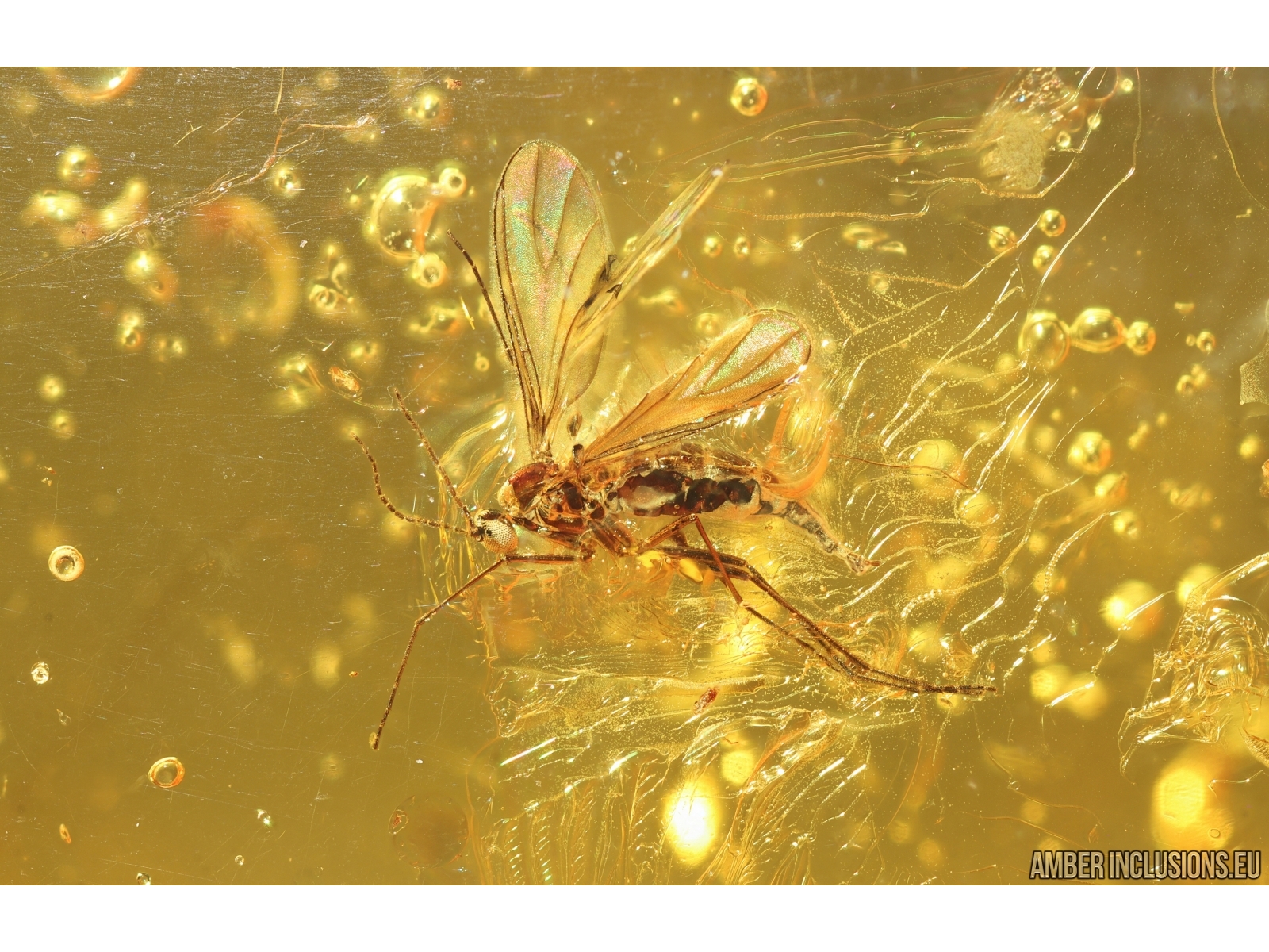 Baltic amber stone with fossil inclusion, trapped 34-56 million years ago - Nice Dark-Winged fungus gnat Sciaridae with colored wings