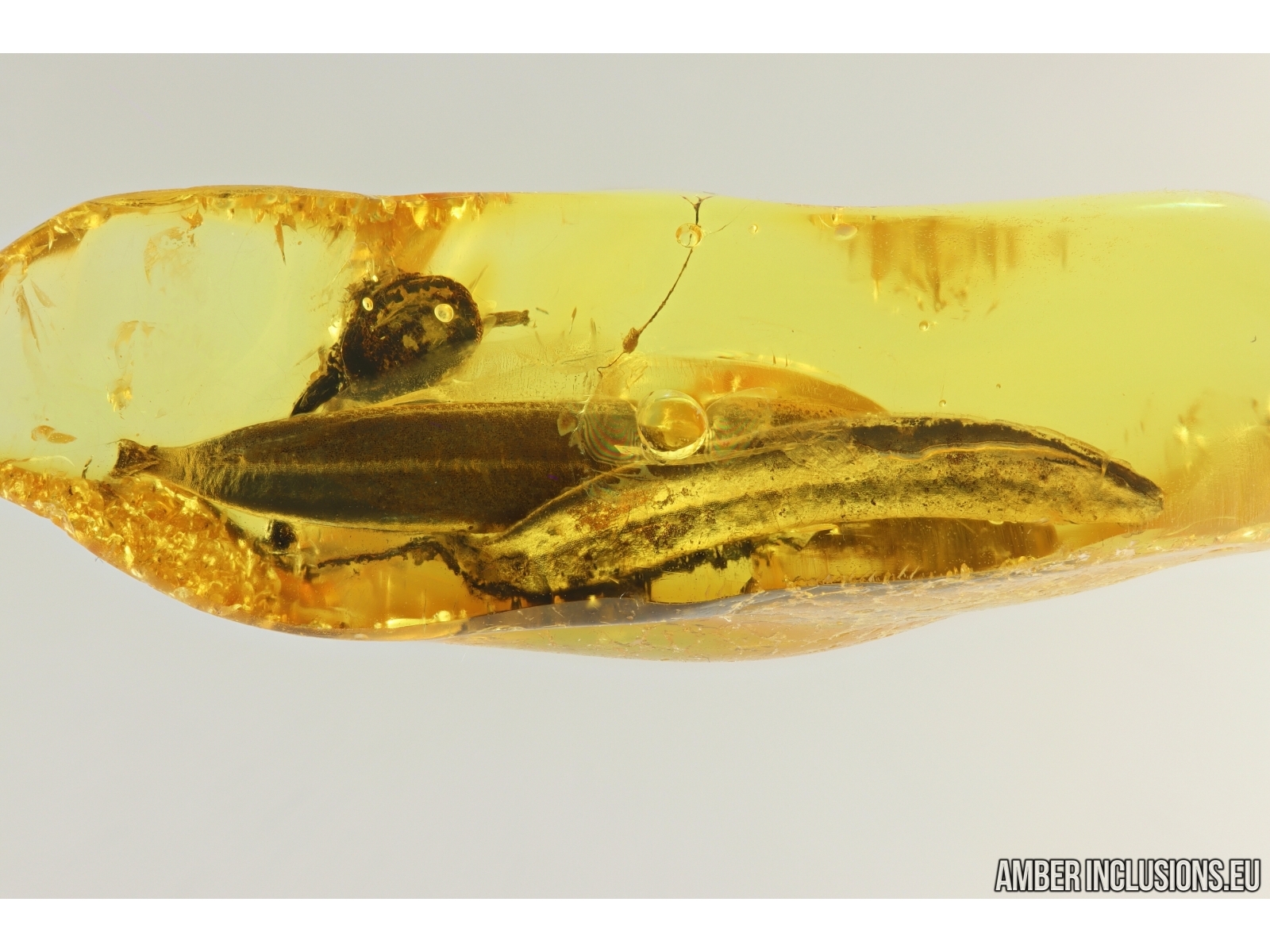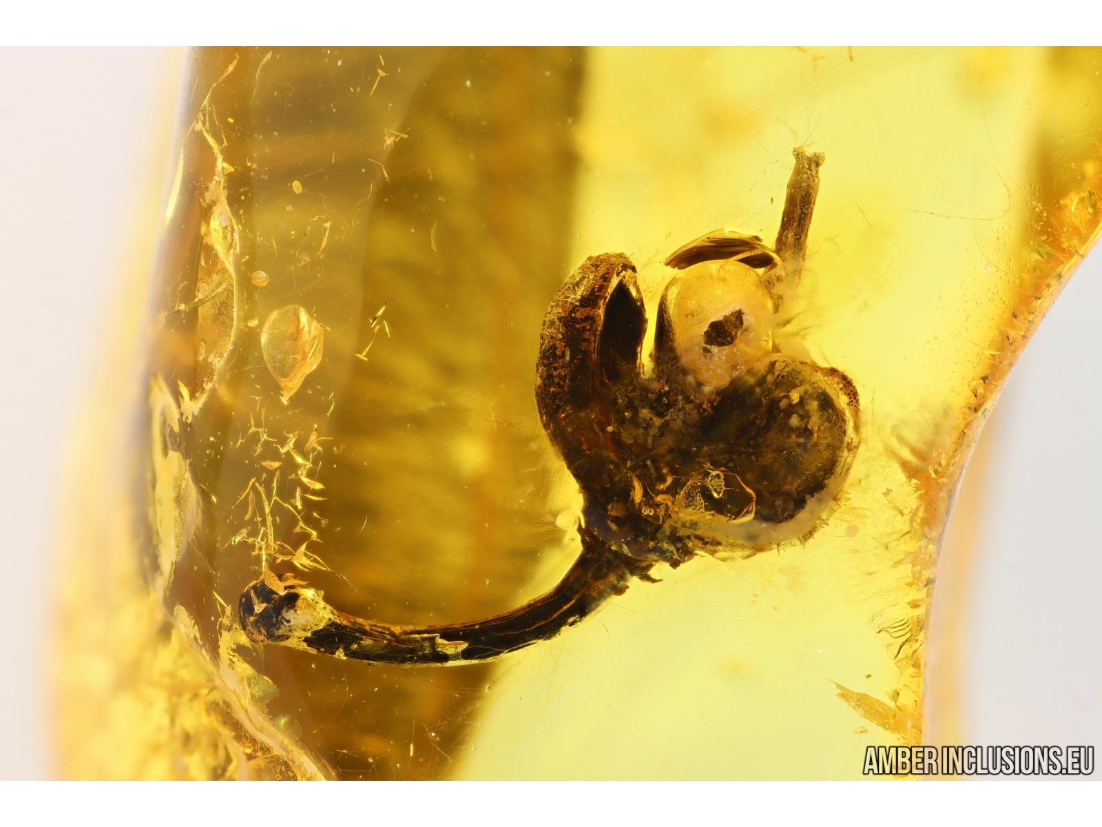 Baltic amber stone with fossil inclusions, trapped 34-56 million years ago -Nice Flower and 2 Big Leaves.