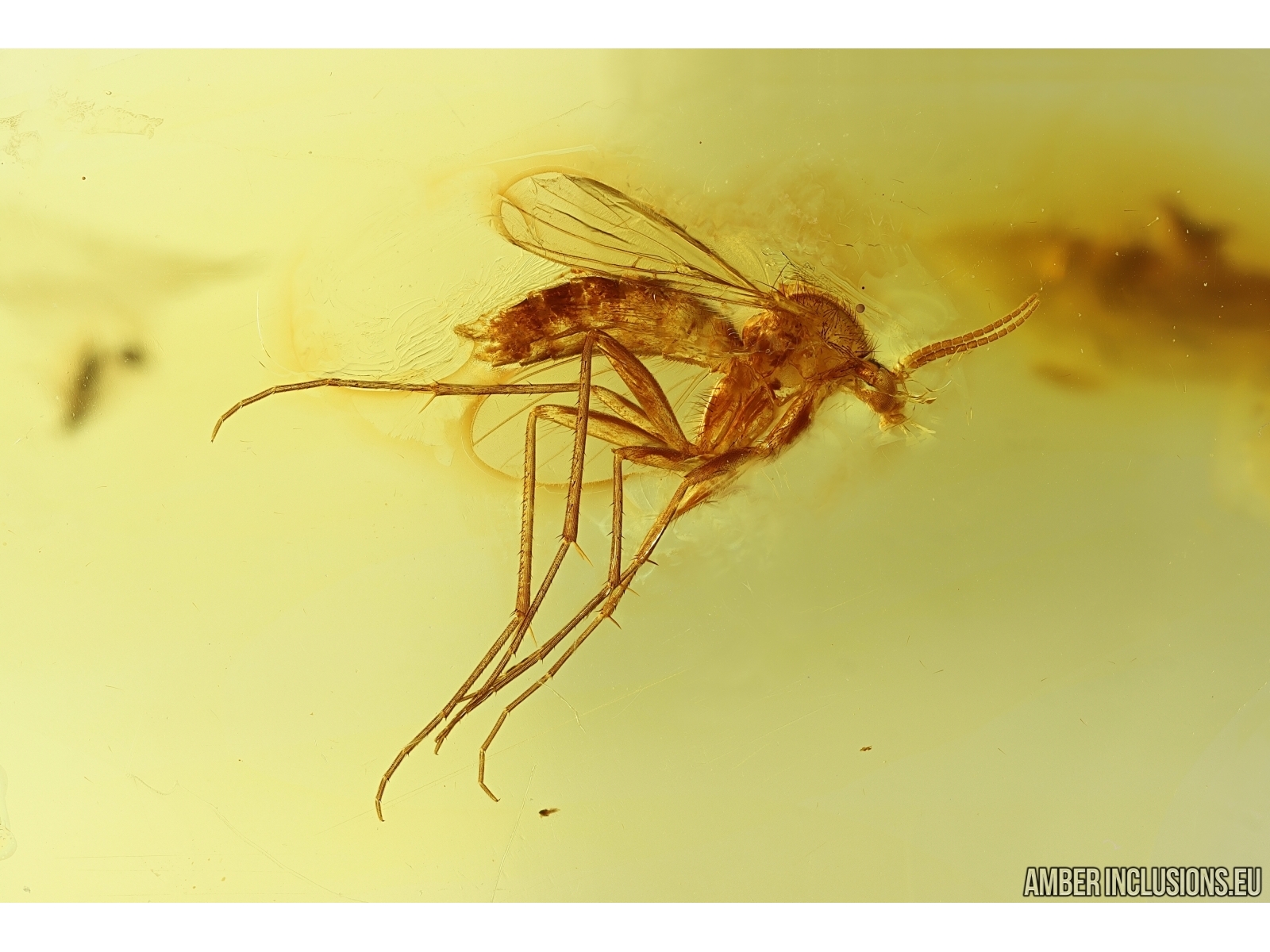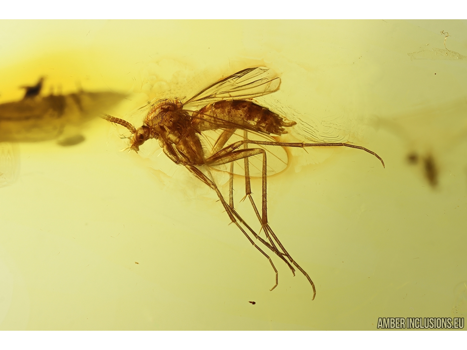 Ukrainian Rovno amber stone with fossil inclusion, trapped 34-56 million years ago - Fungus gnat Mycetophilidae.