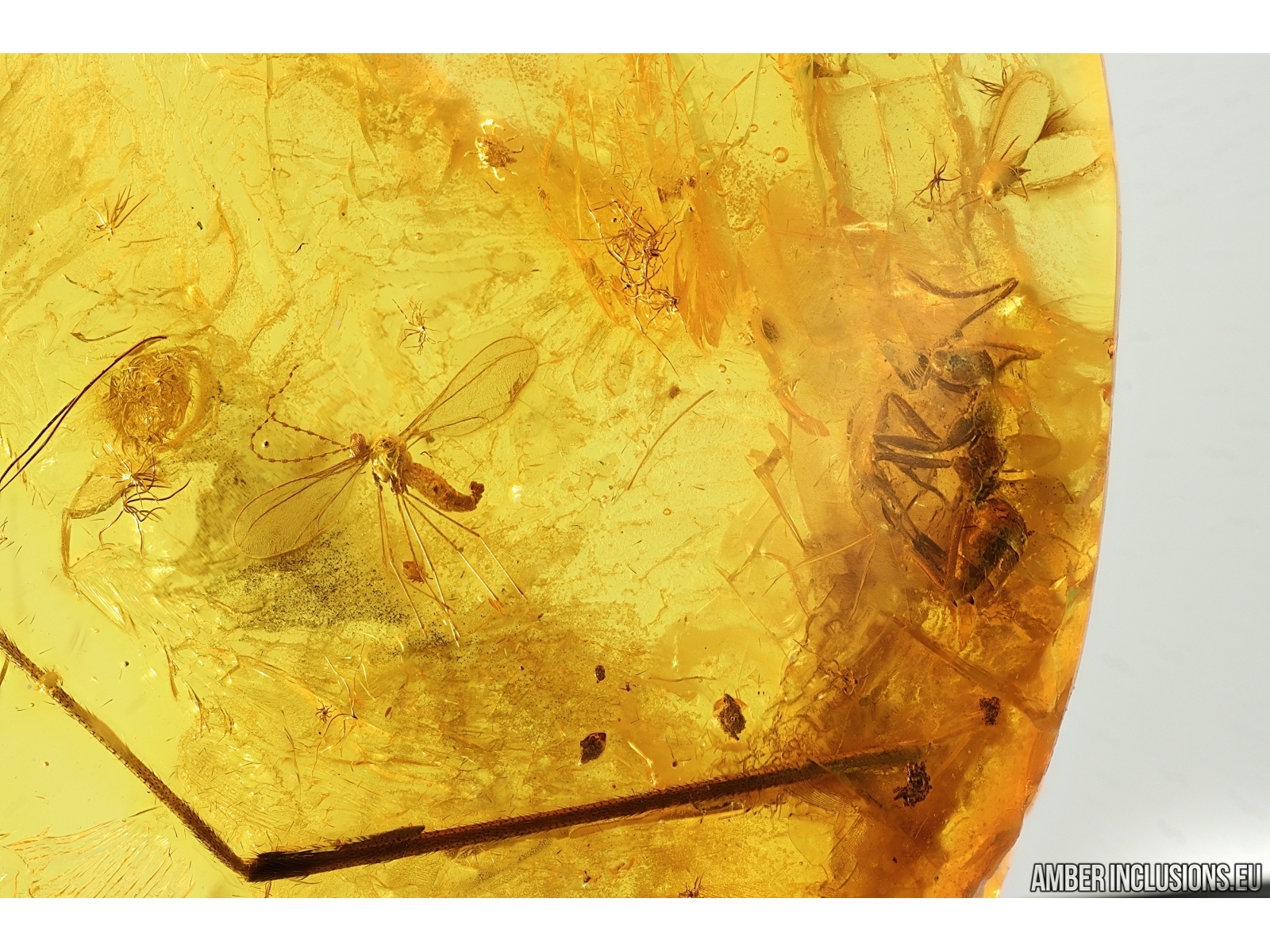 Baltic amber stone with fossil inclusions, trapped 34-56 million years ago -Nice Gall Midge Cecidomyiidae, Ant and Coccid.